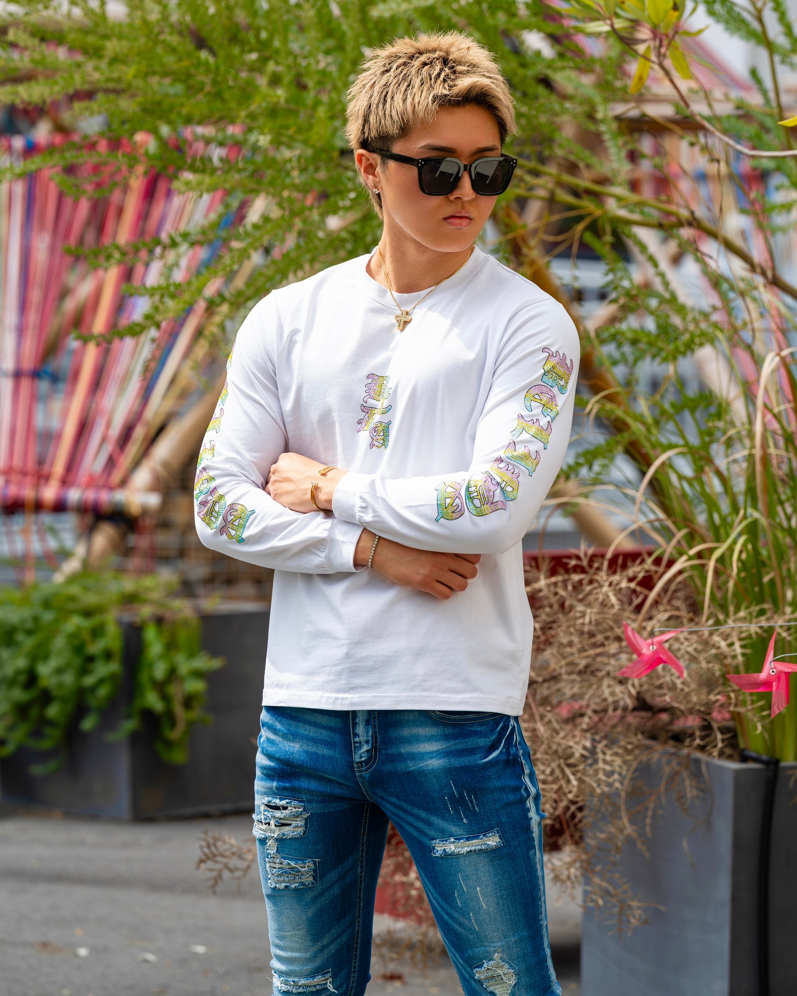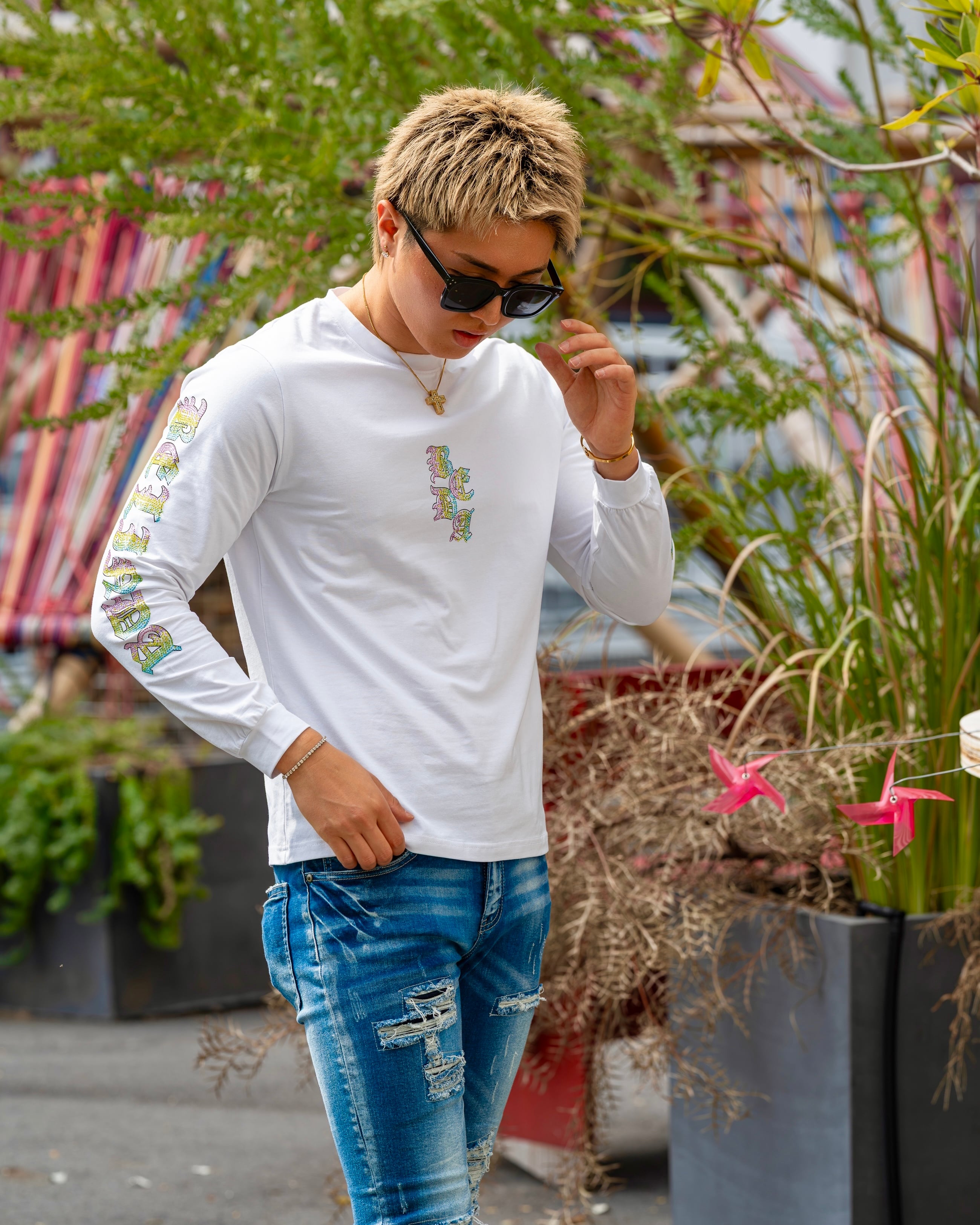 【虹色に煌めく、視線を奪うロンT】