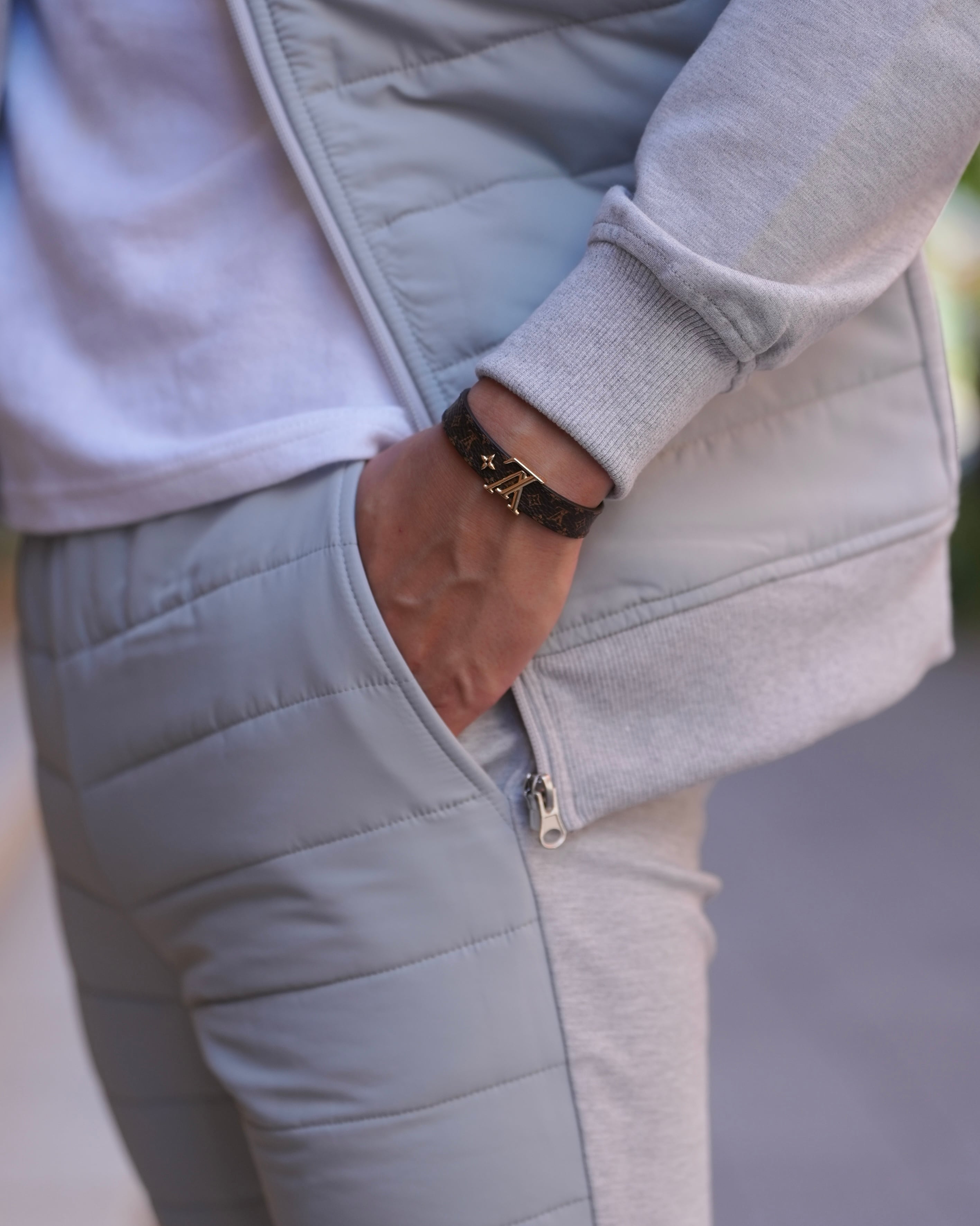 タイトフィットで美脚効果も抜群。足元のスニーカーとの相性を考えた1本です。