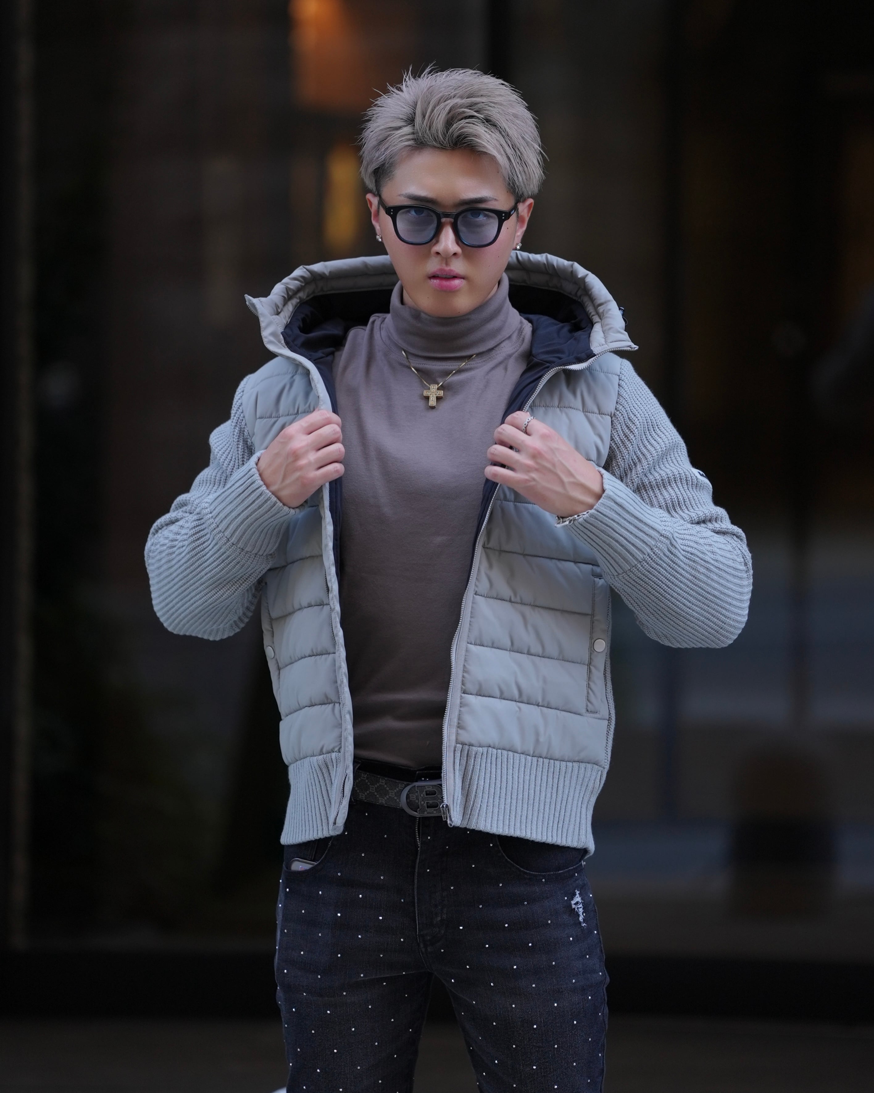 タートルネックでラグジュアリーな衿元を演出。