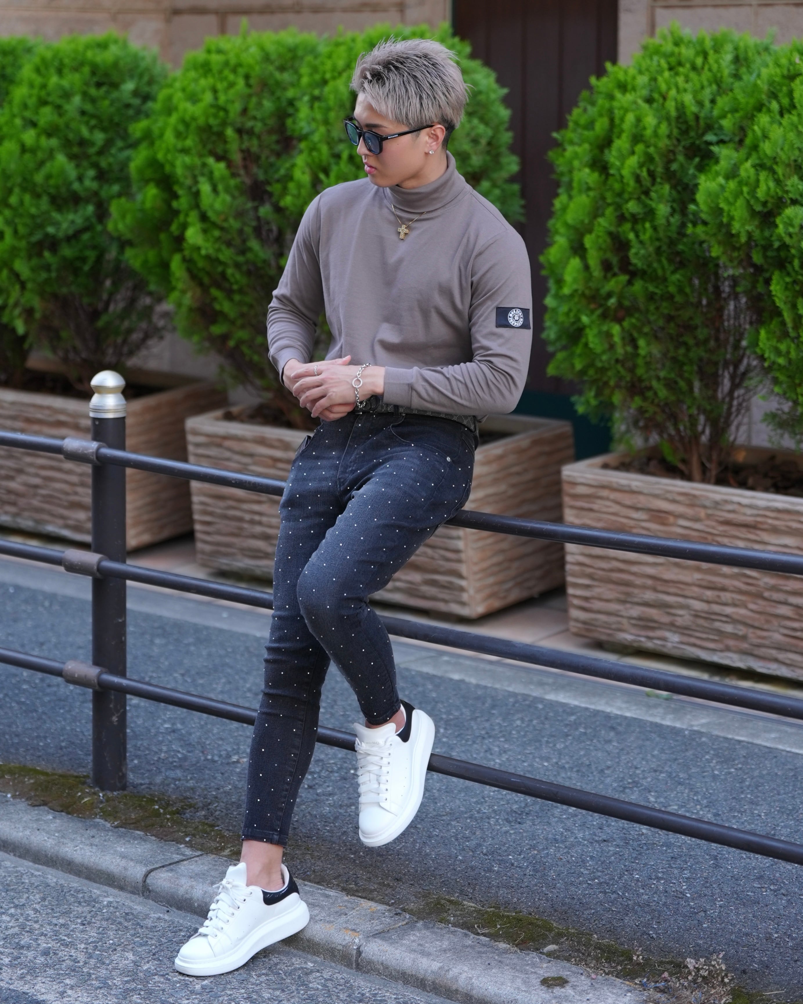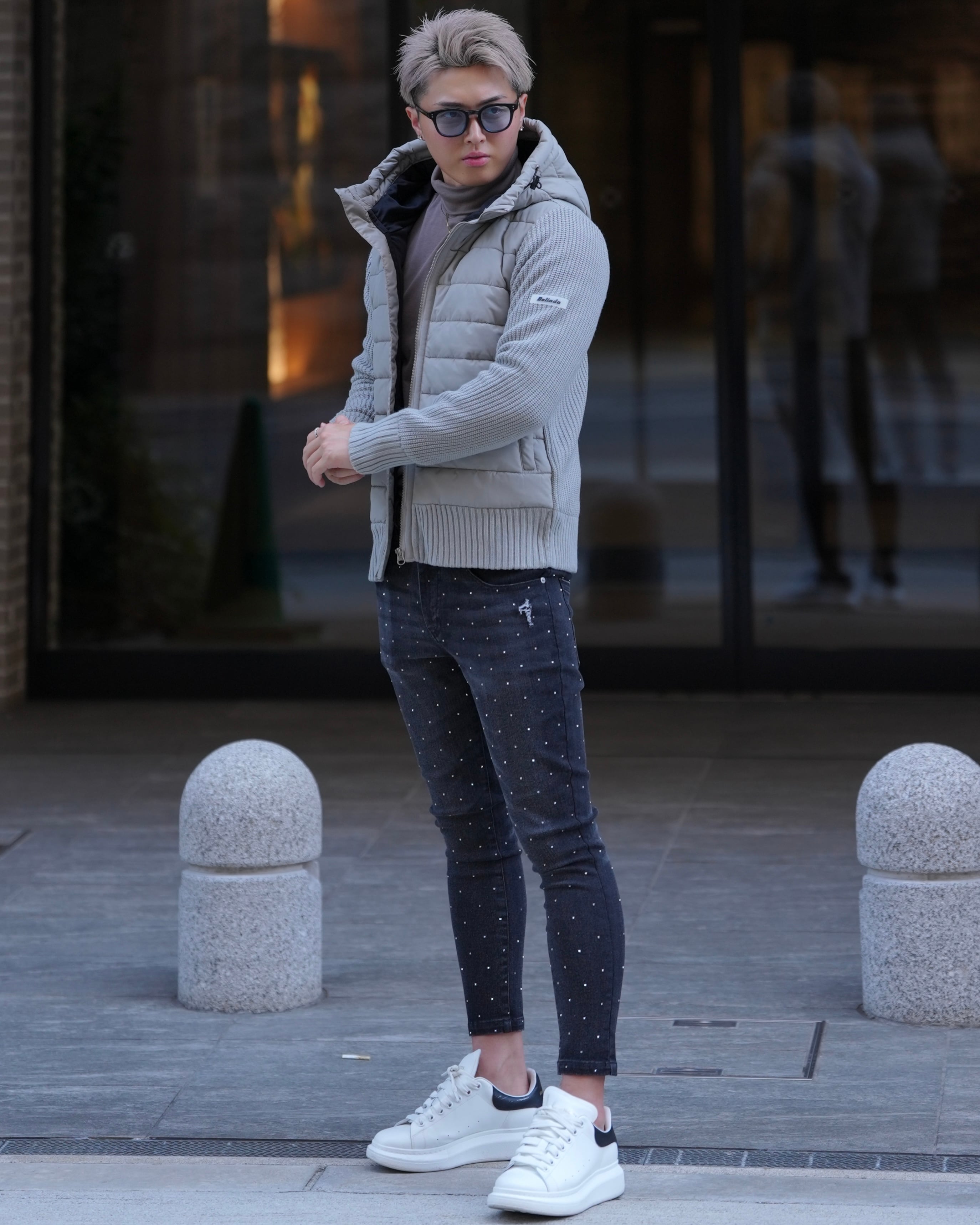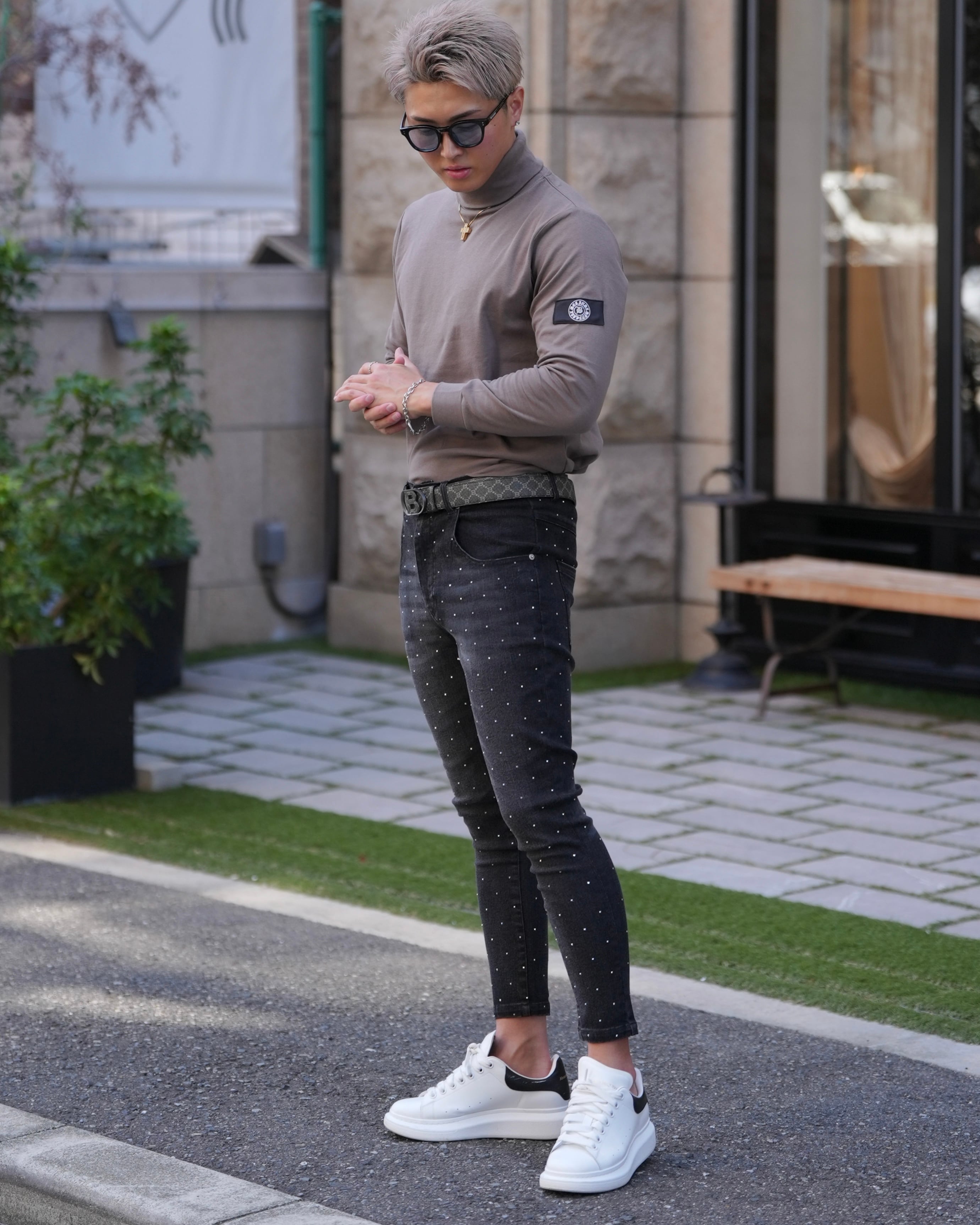 腕にワッペンを配置し1枚でもコーデを