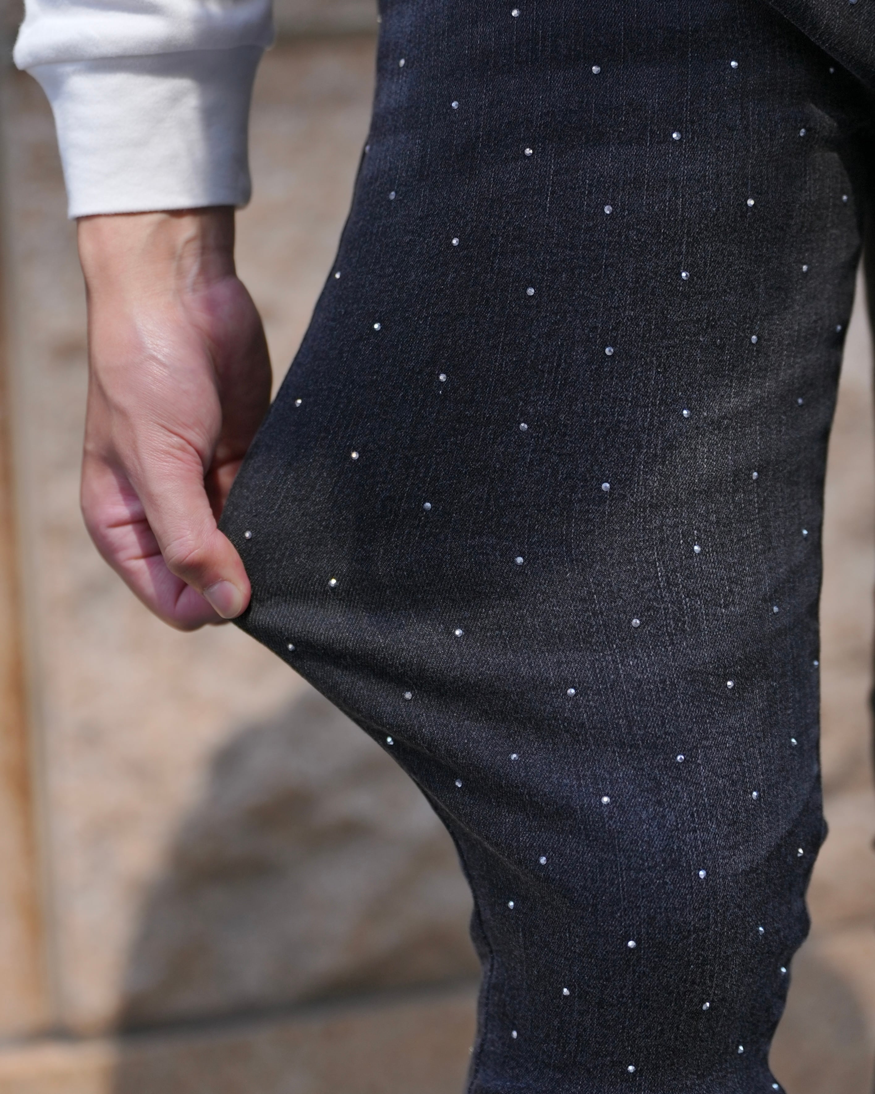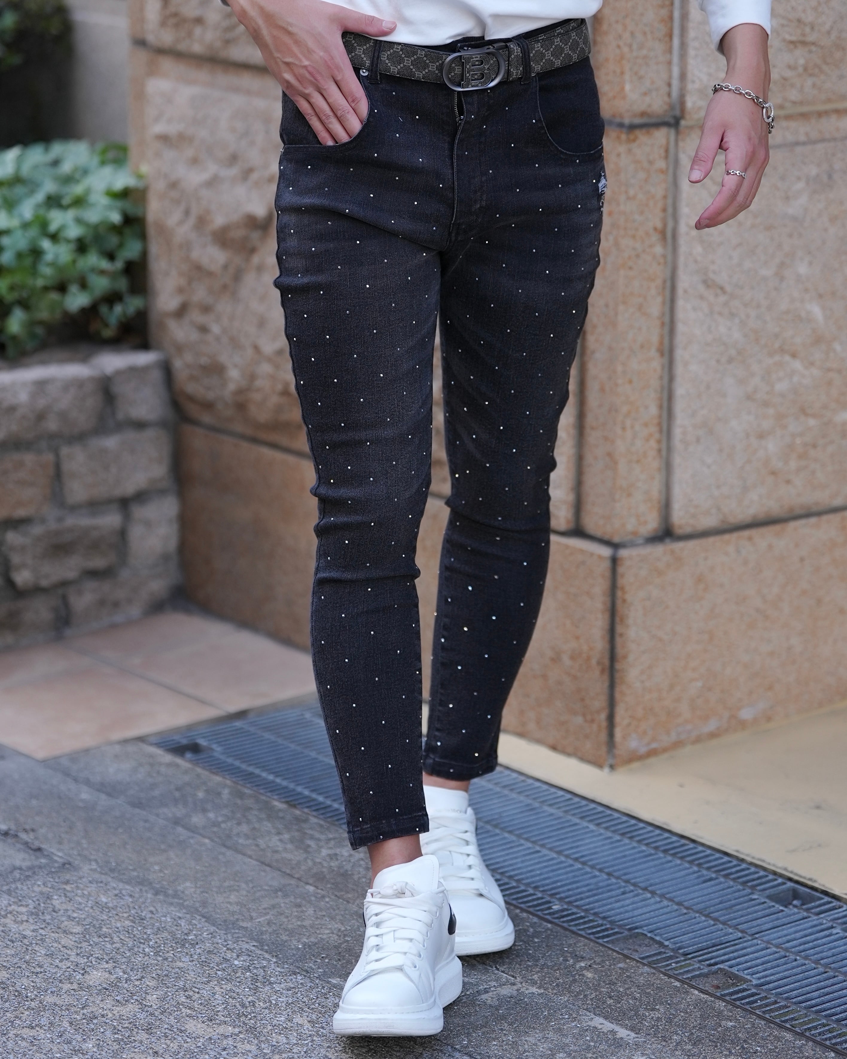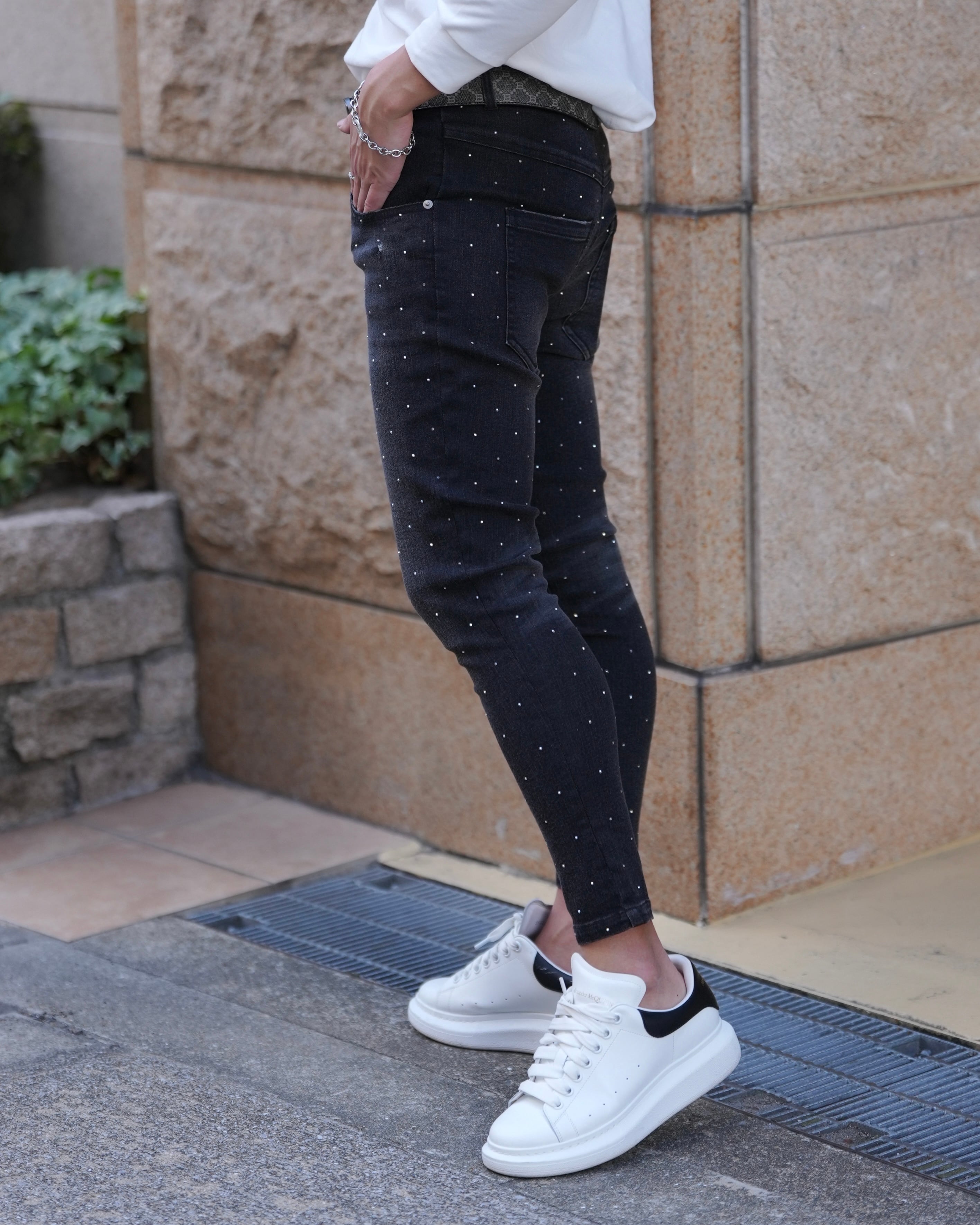 RHINE STONE DENIM PANTS BLACK【OW25BD007】