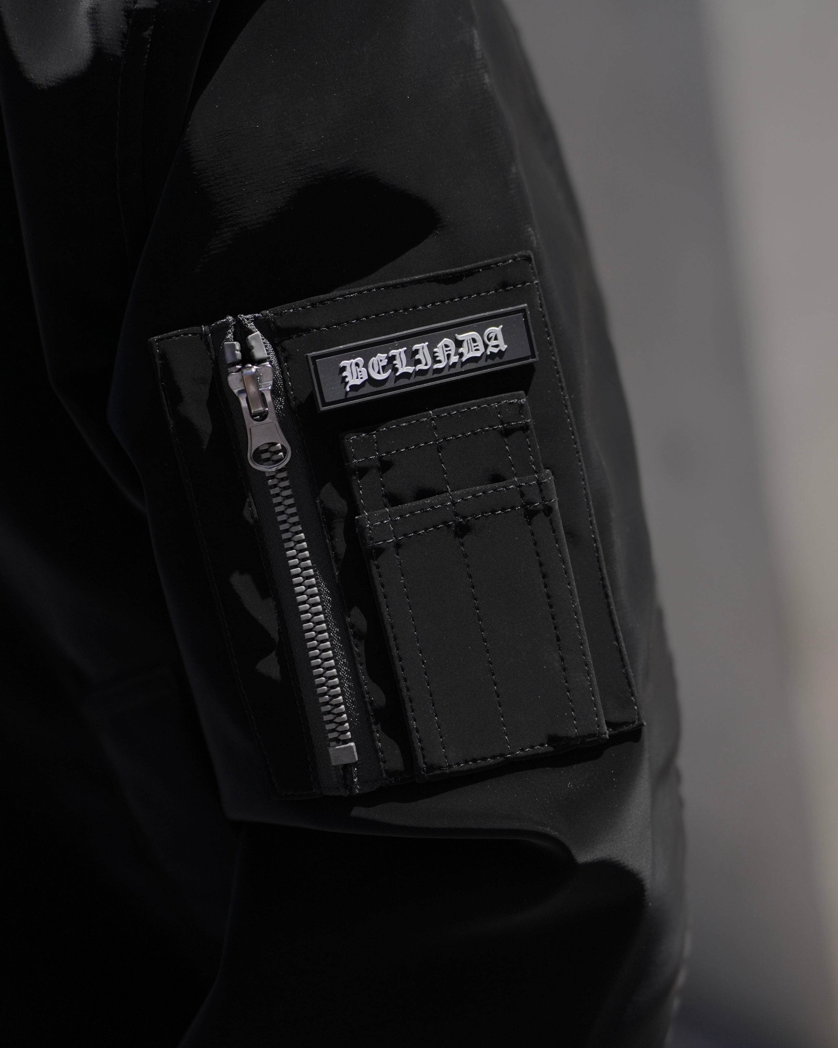袖にはBELINDAのロゴワッペンを施し、細部までこだわった無双仕上げ。