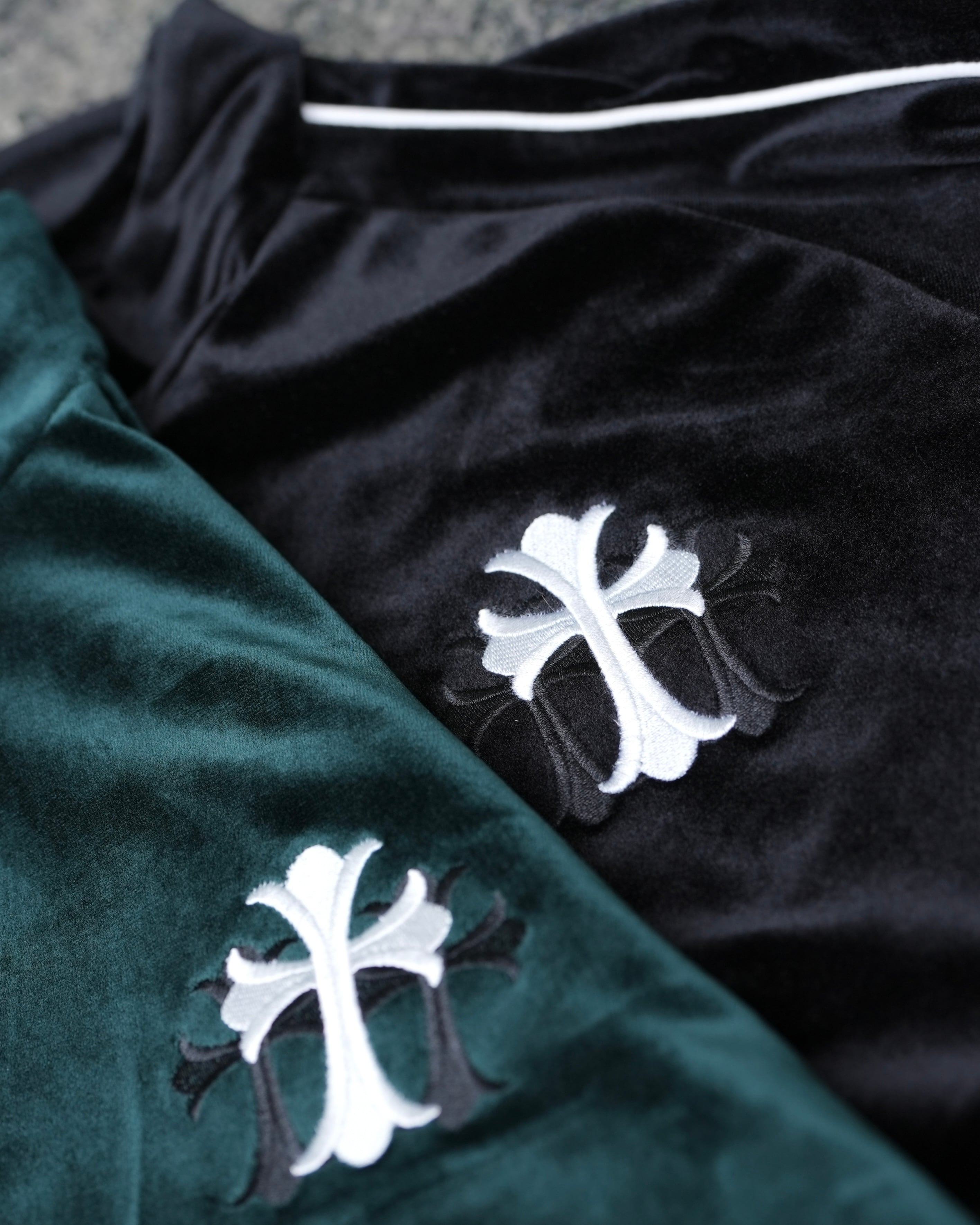 高級感あるベロア素材にクロス刺繍を落とし込んだ