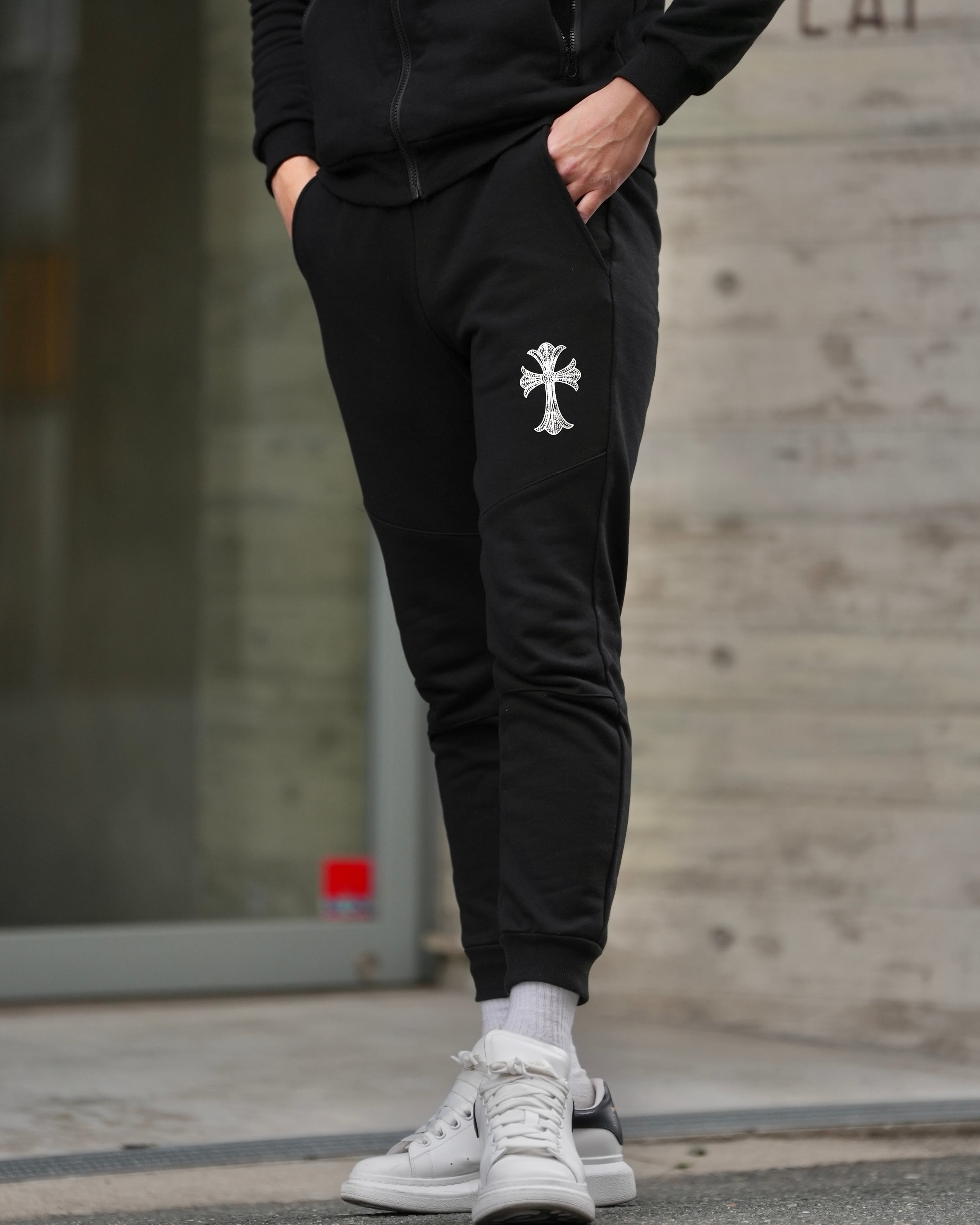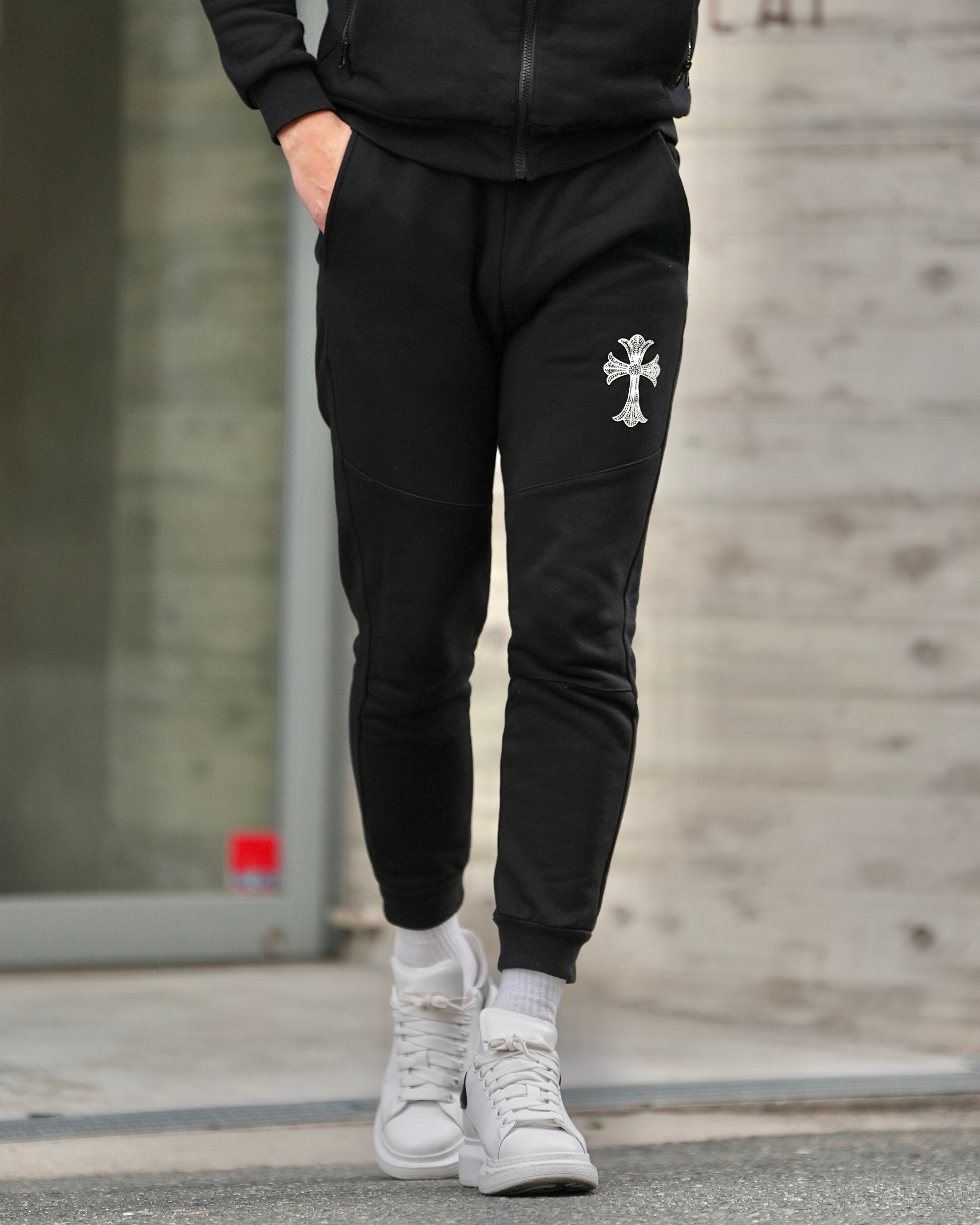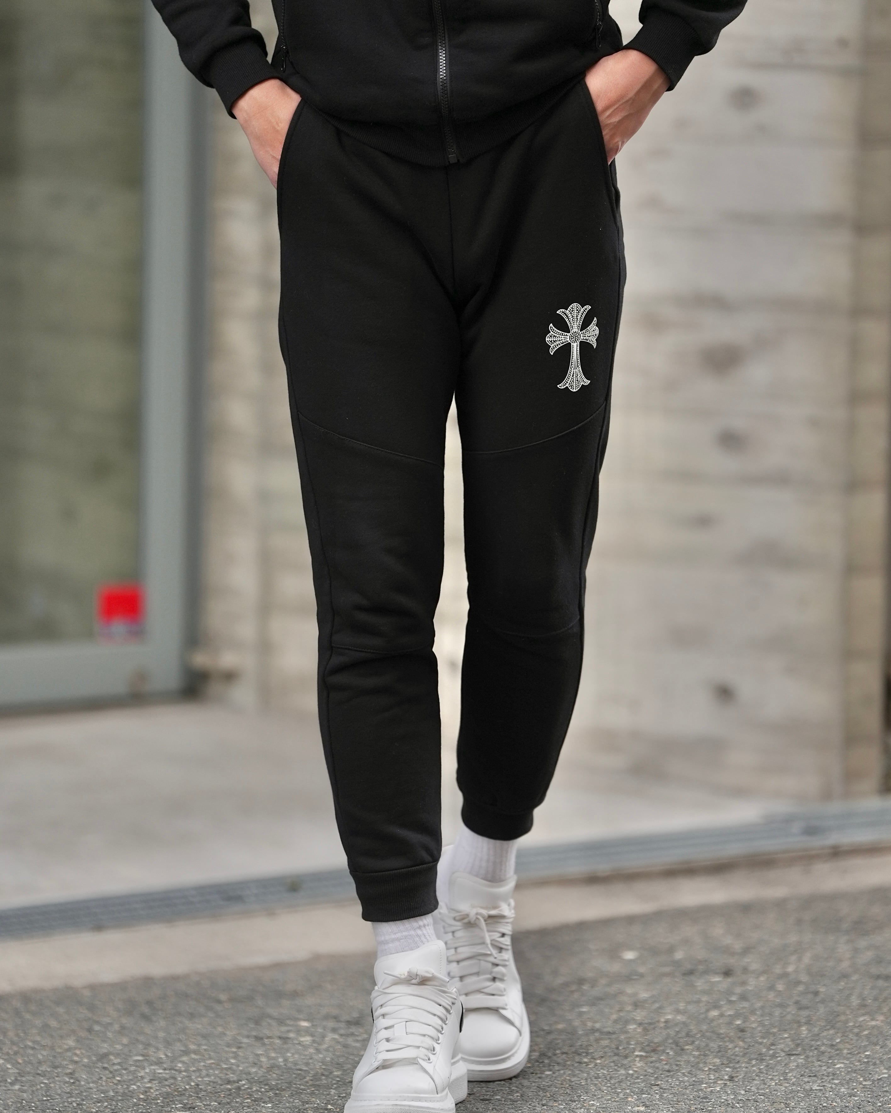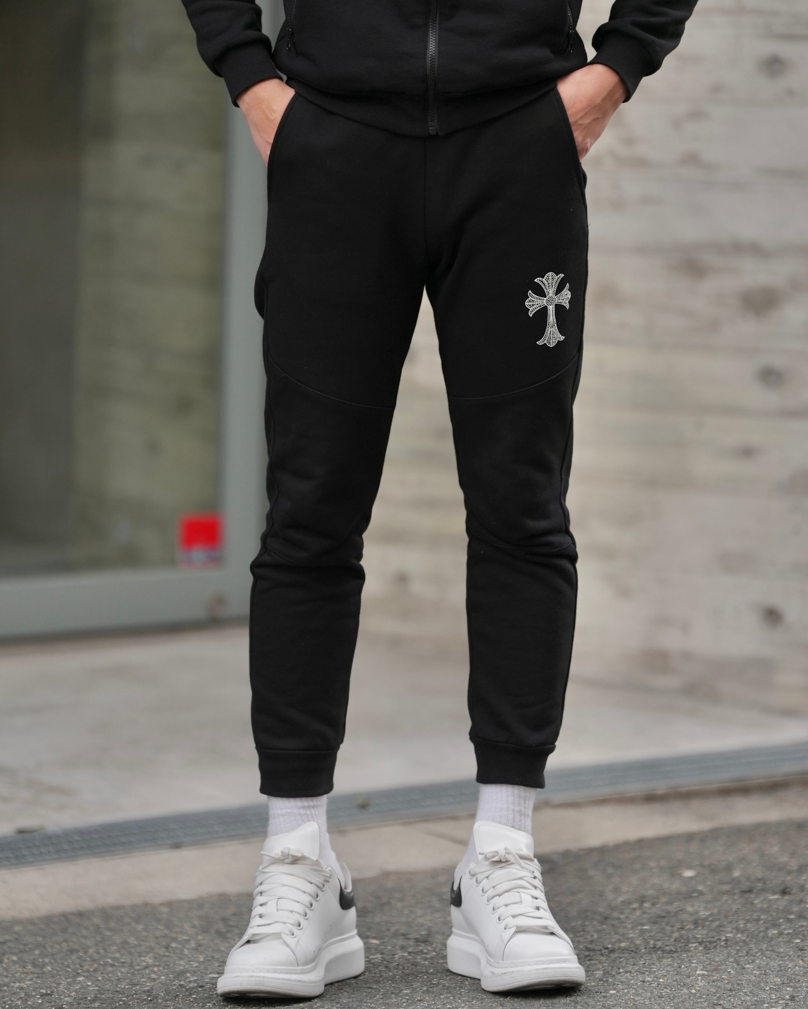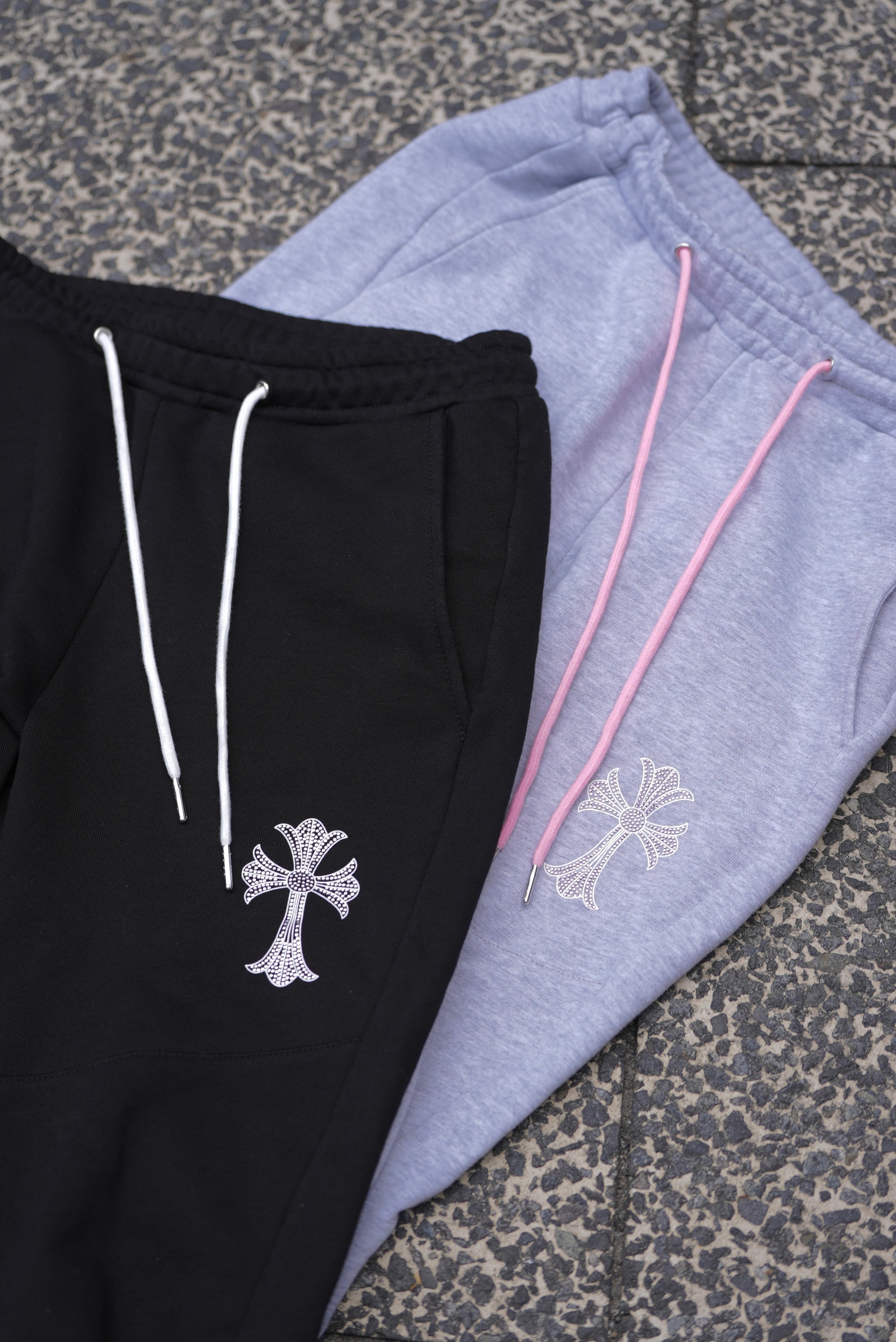 上質な素材にクリスタルストーンのロゴが輝くスウェットパンツ。