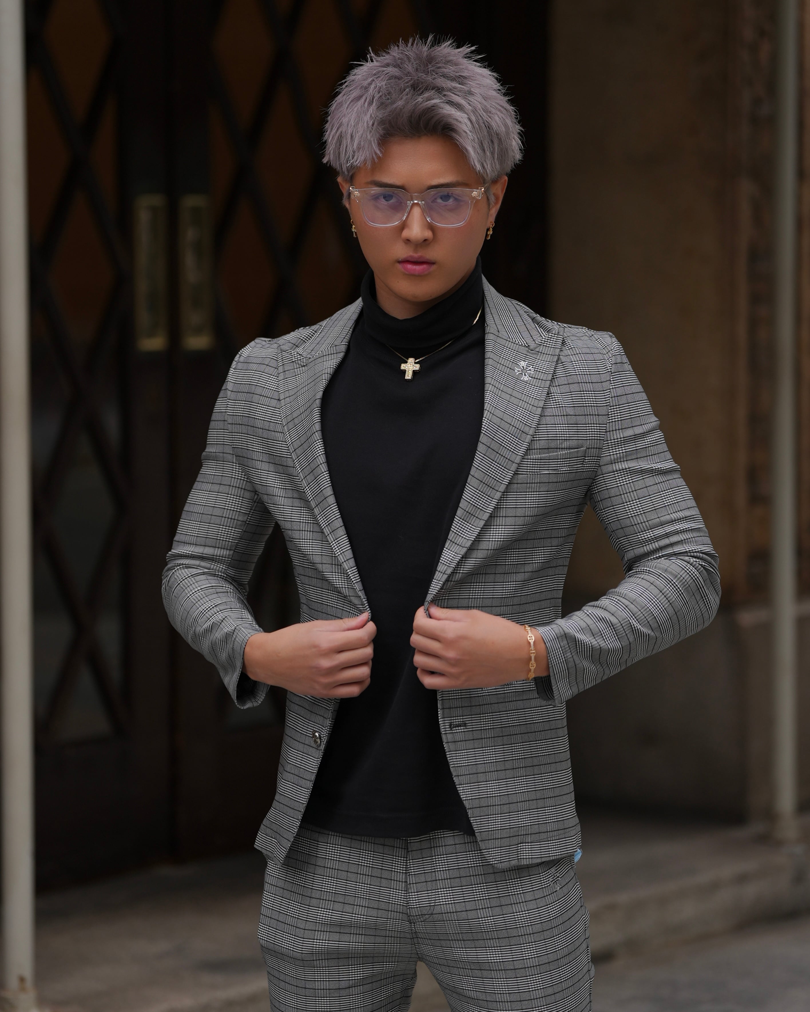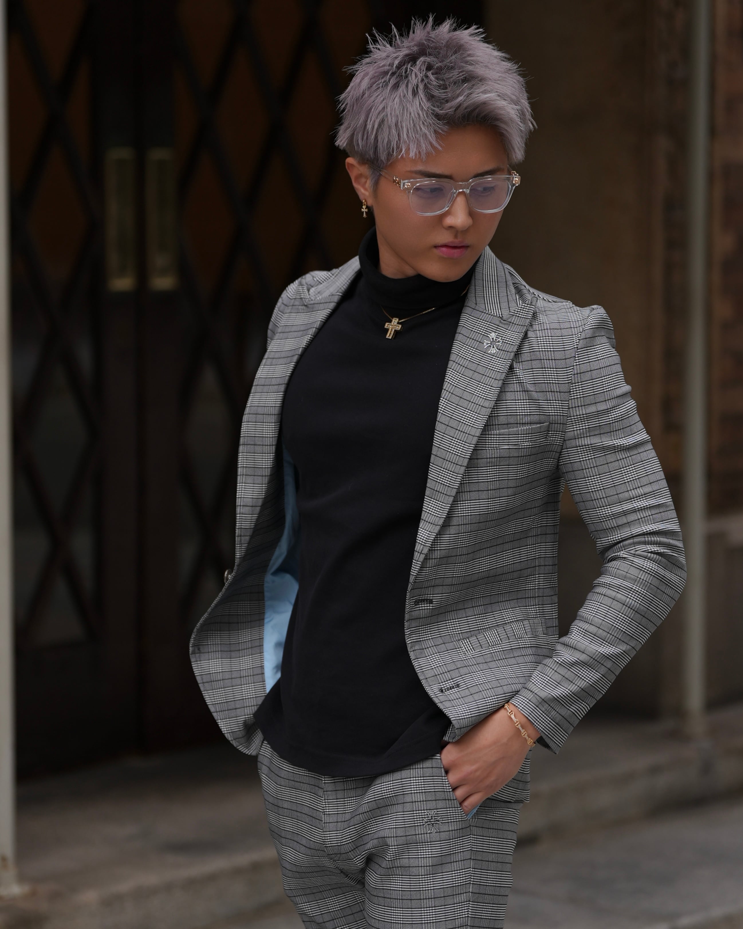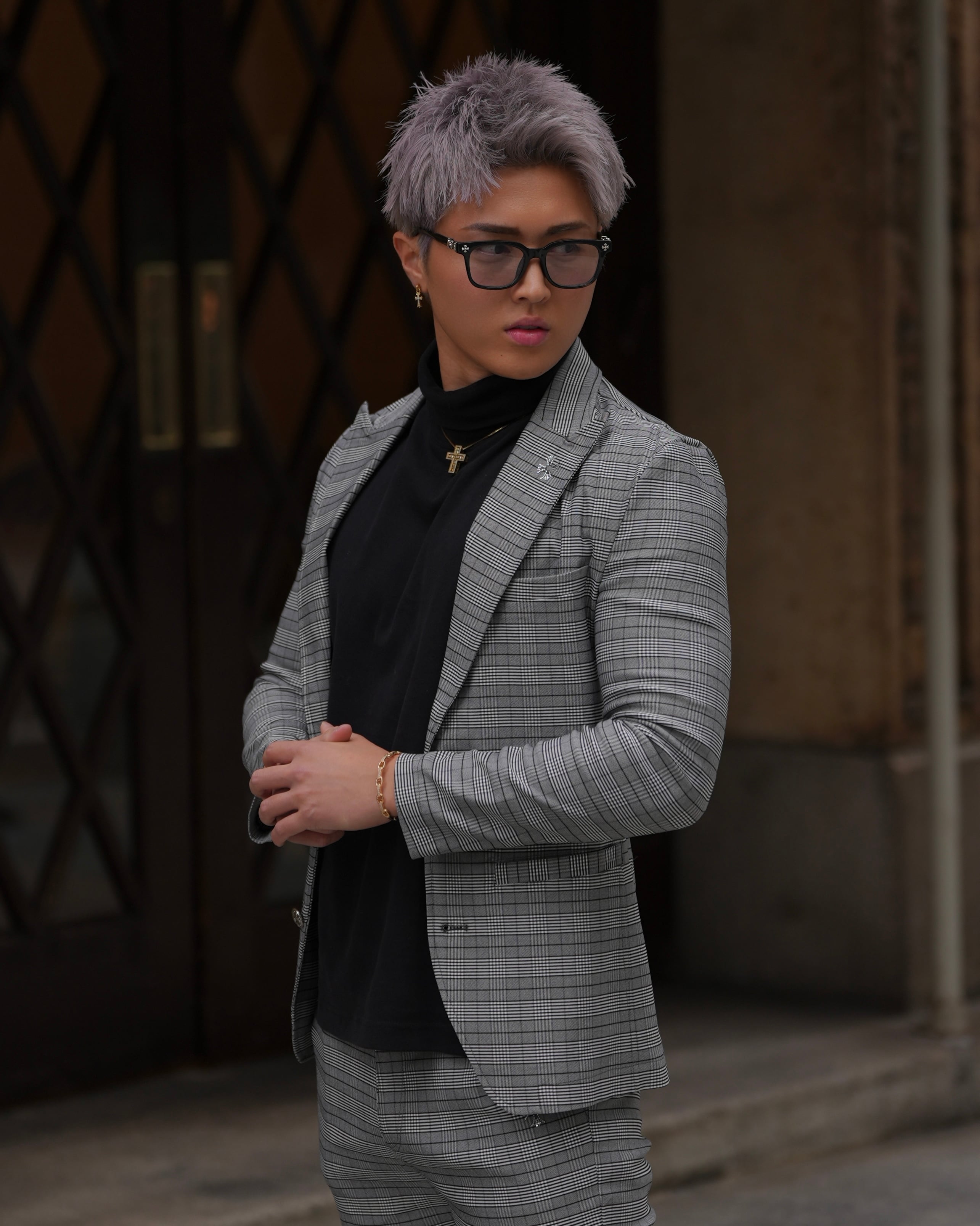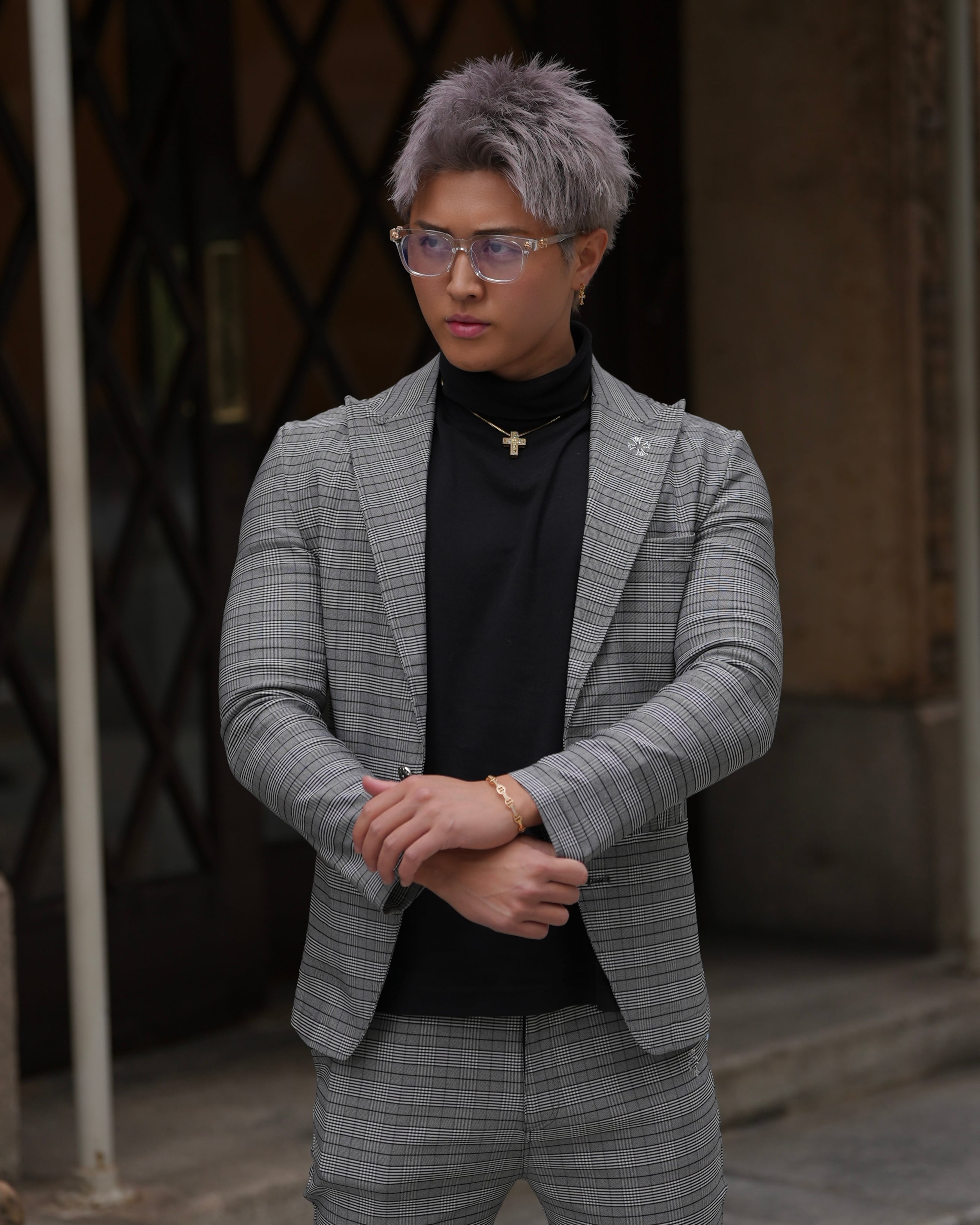 シャープで洗練された雰囲気を演出し、着るだけで都会的な存在感が溢れ出す仕上がりに。
