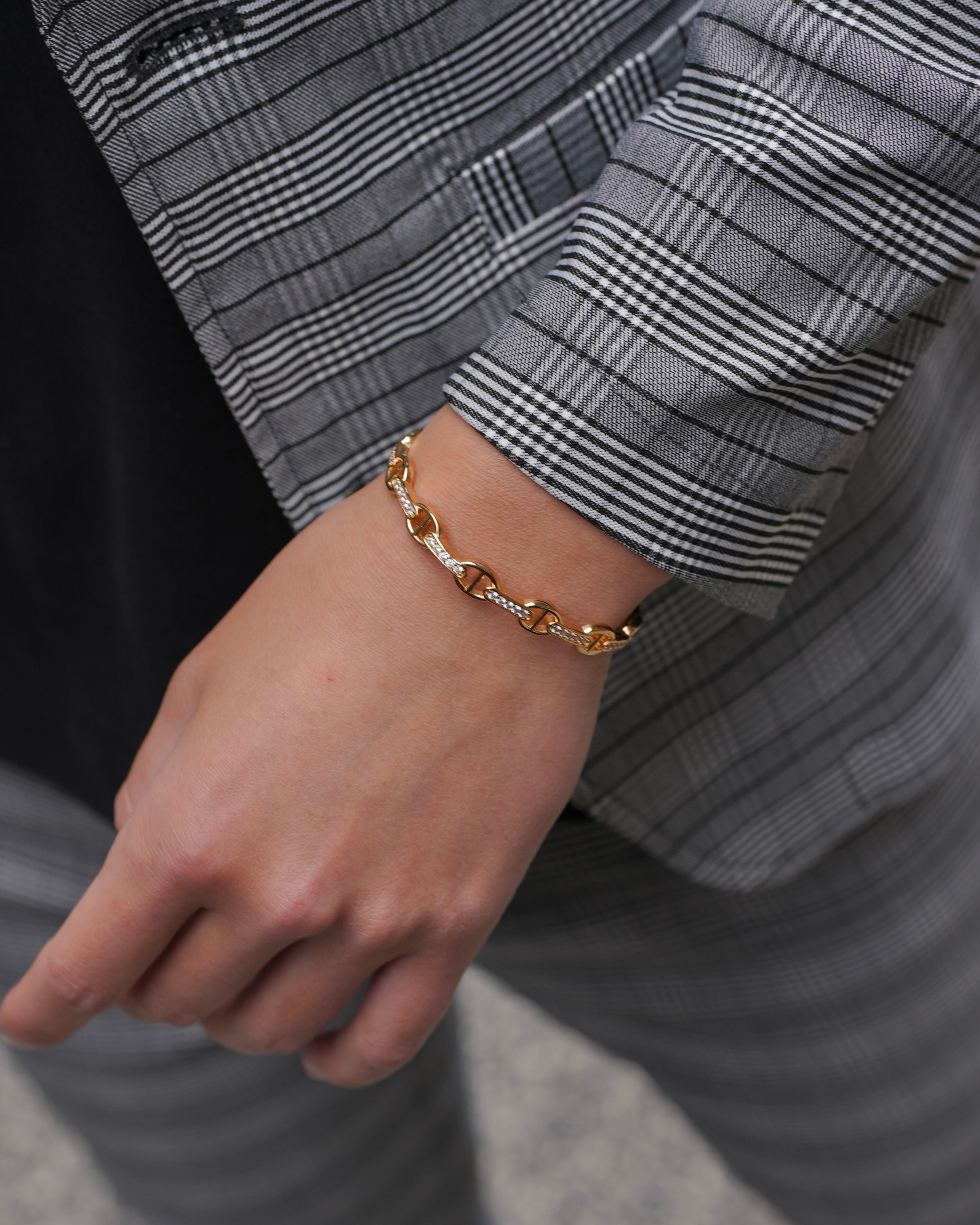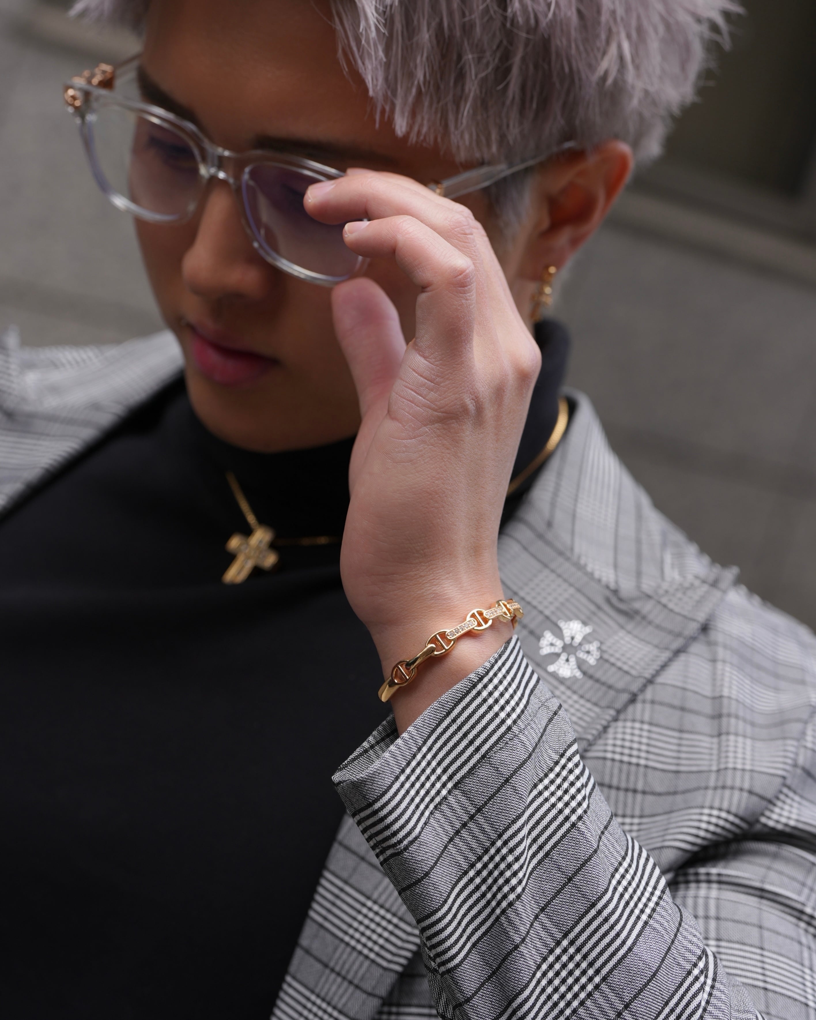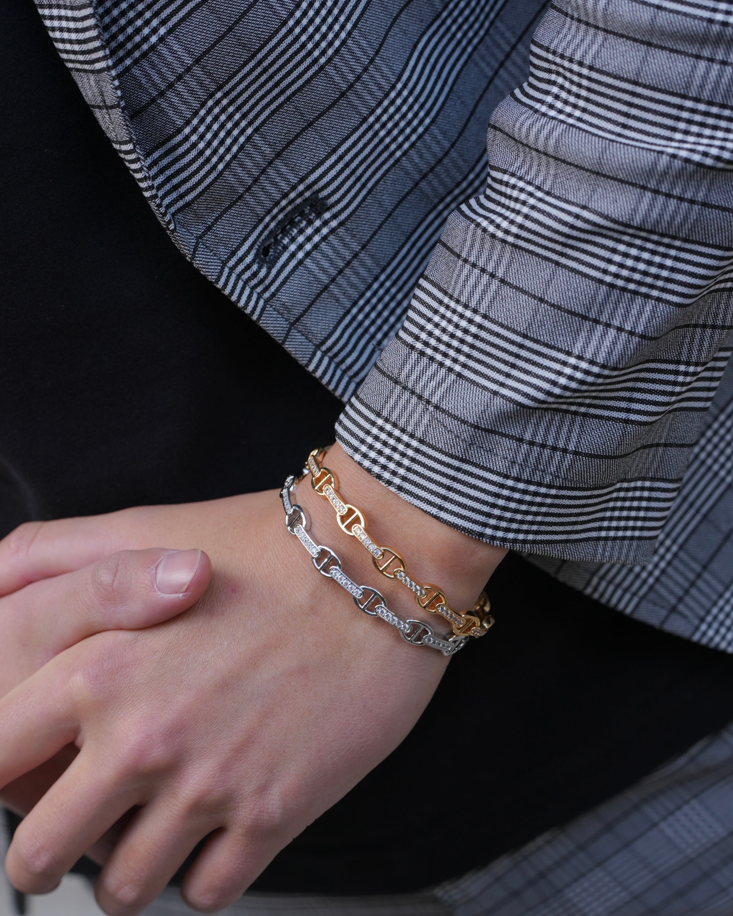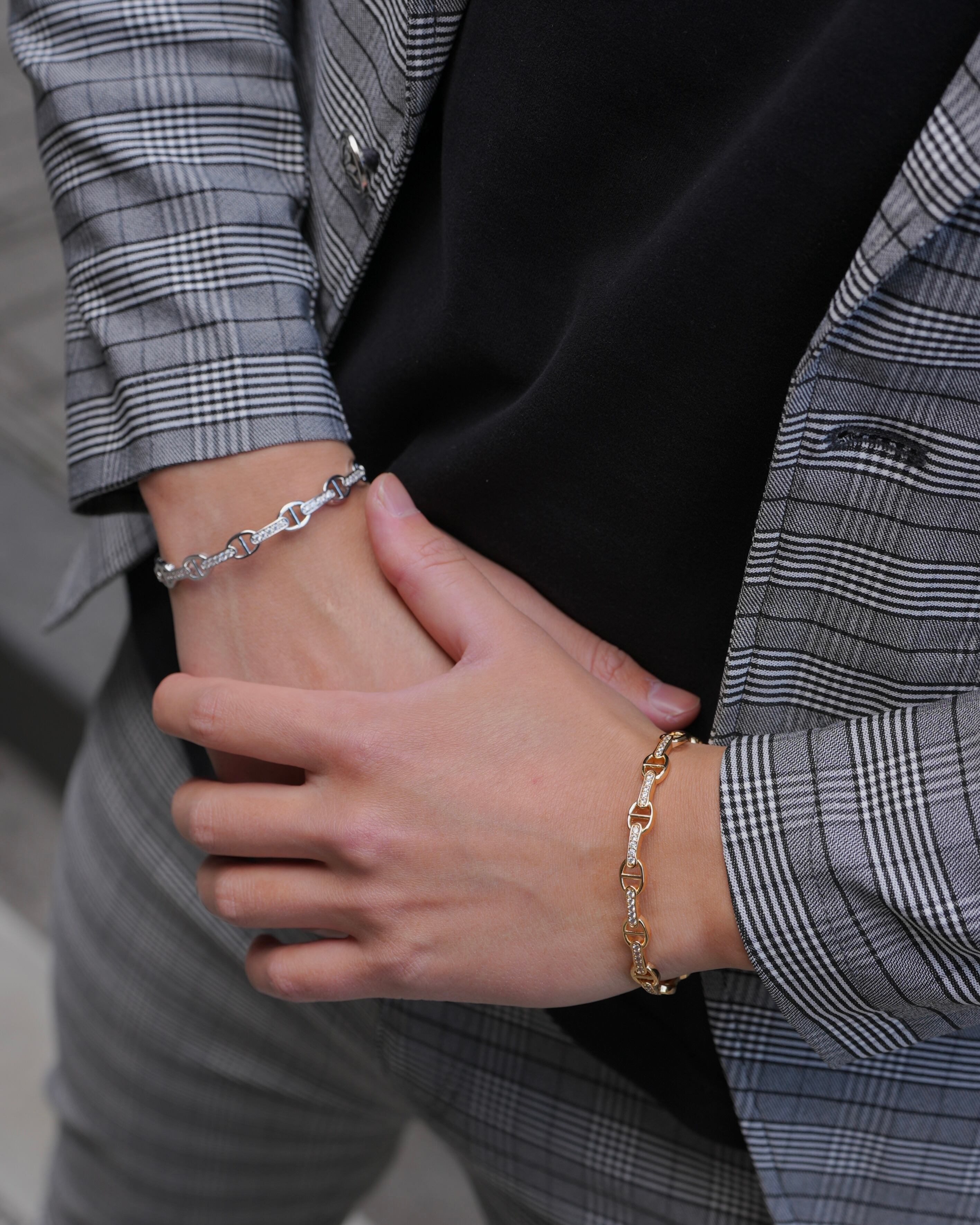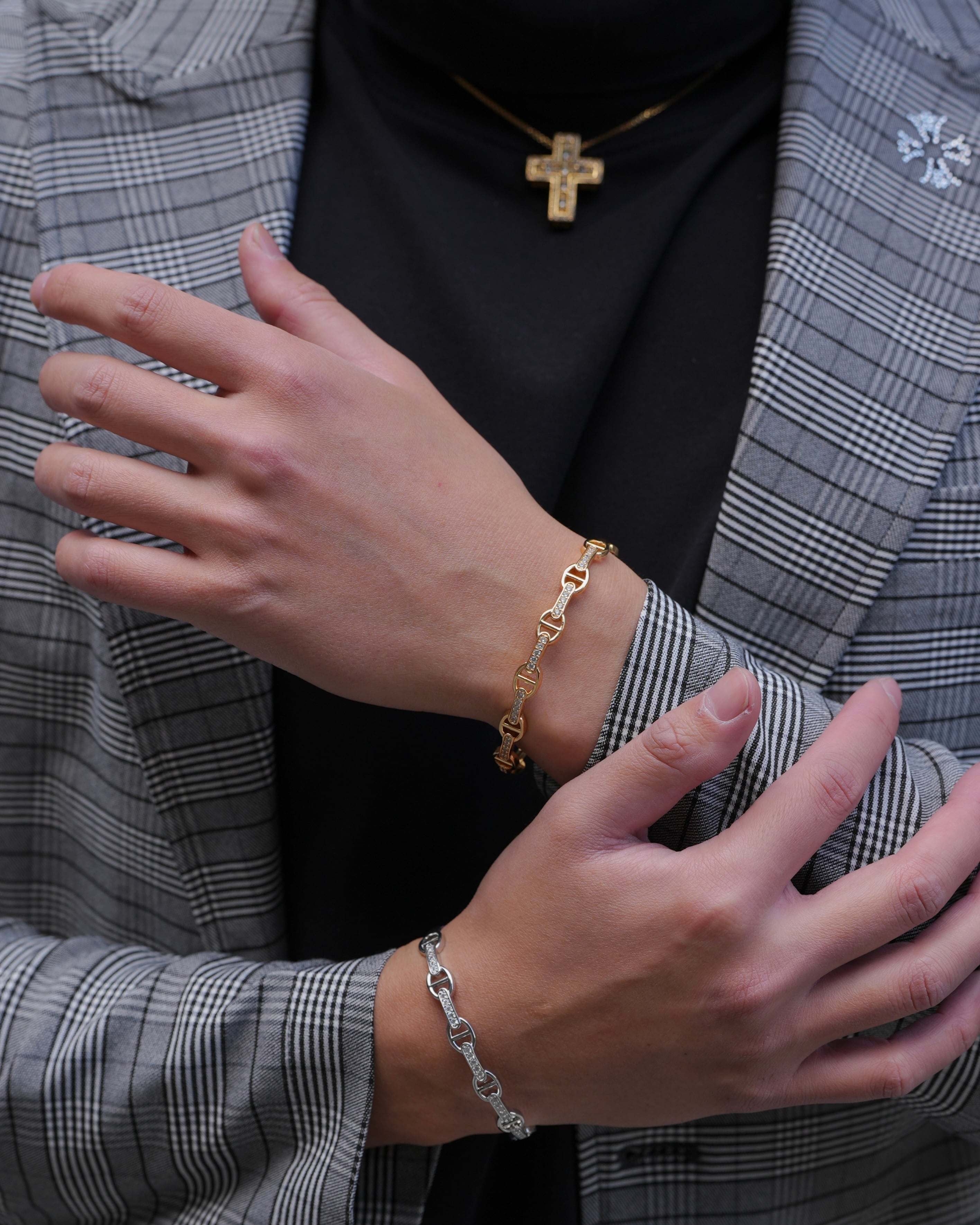 ぎっしりと埋め込まれたジルコニアのストーンは熟練の職人技で、全て爪で留められています。弊社のアイテムは安価なボンド留めの類似品とは輝きの質にはっきりと差が出るのがポイントです。