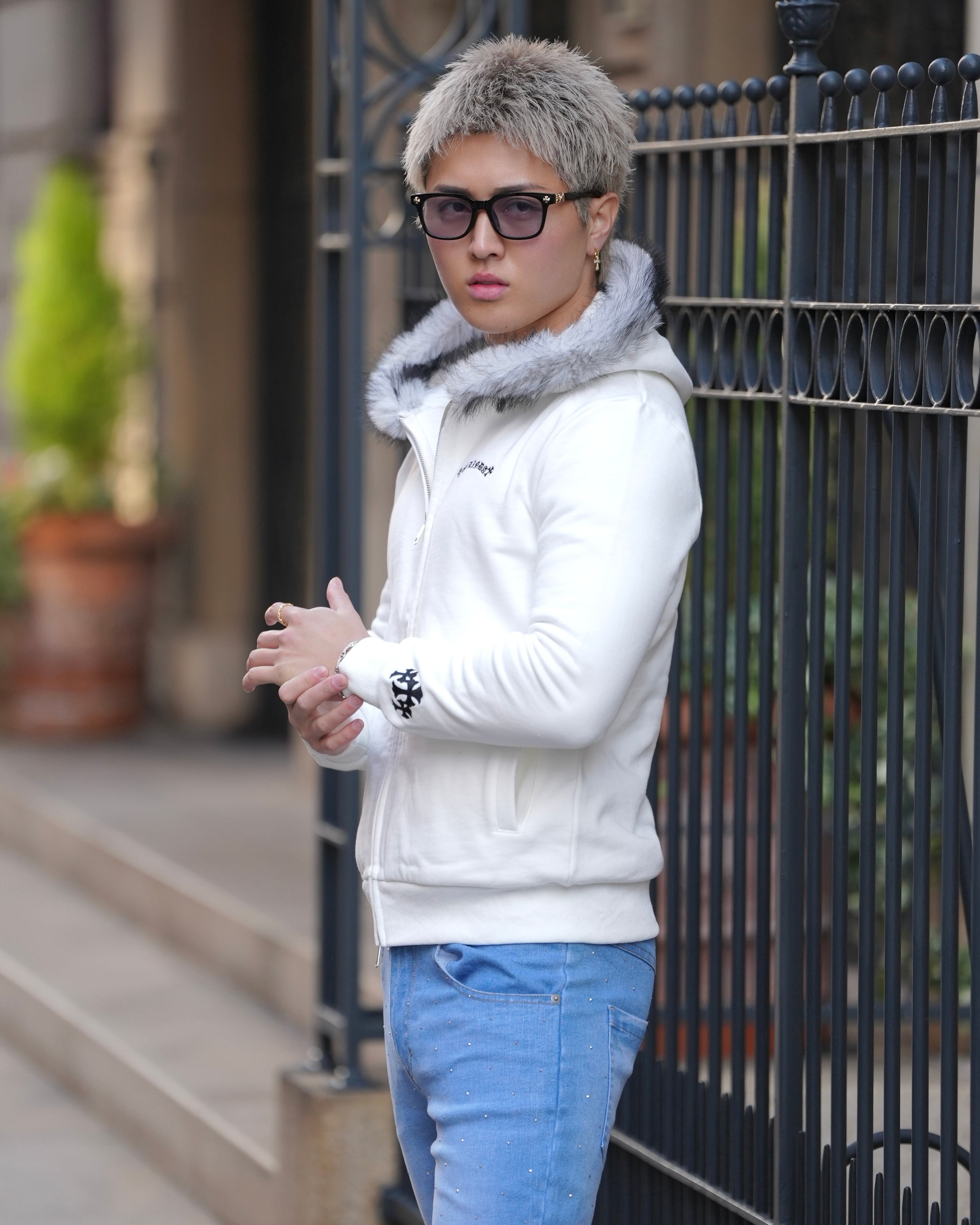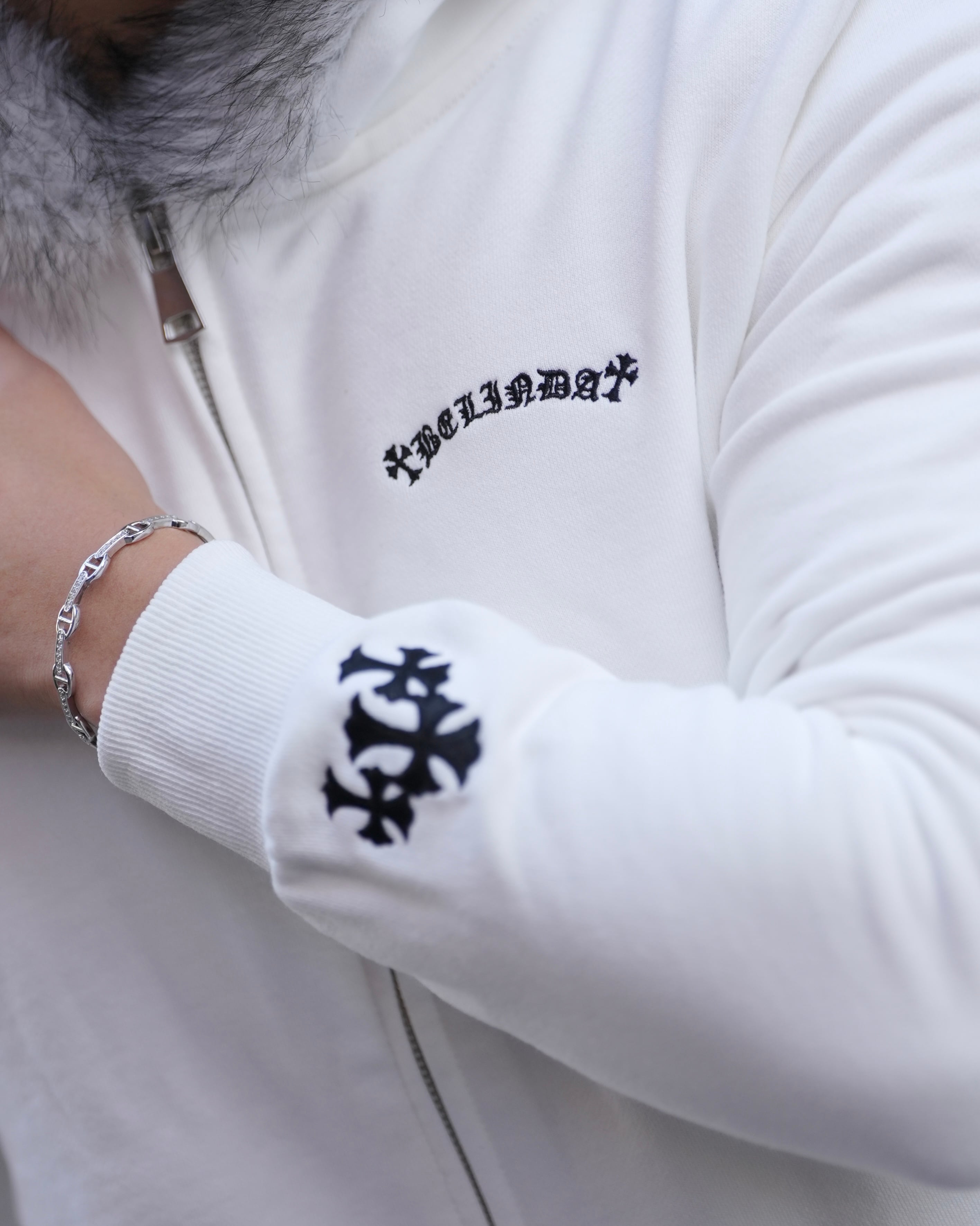 フロントにはブランドロゴ刺繍、袖口にはクロスモチーフ刺繍を施し、細部まで抜かりないデザインに仕上げました。