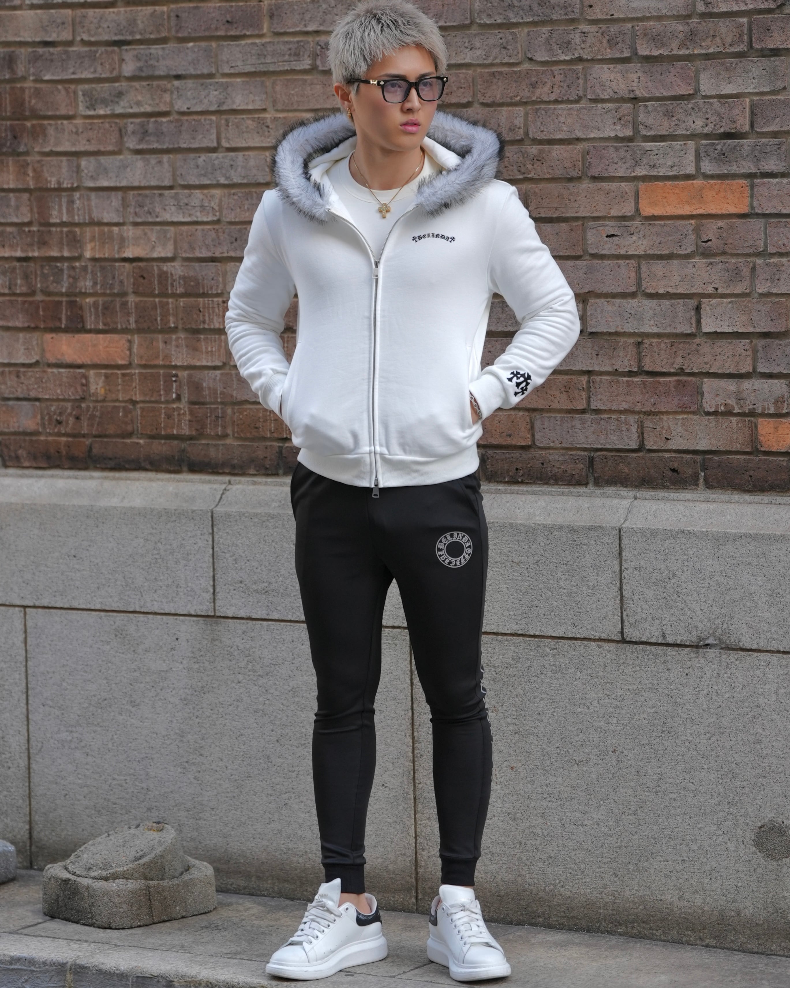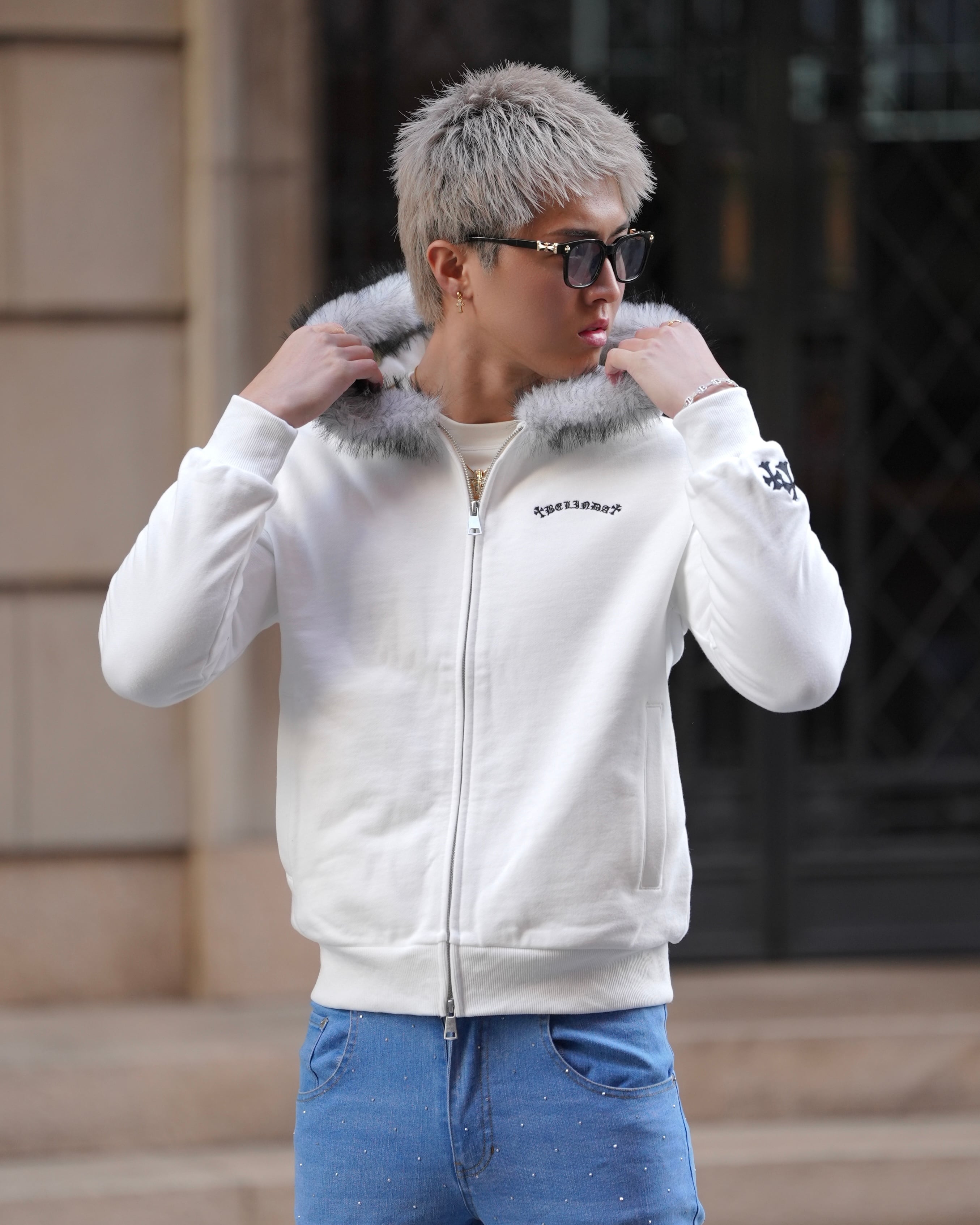 スウェット×贅沢ファーの組み合わせで暖かさと高級感を