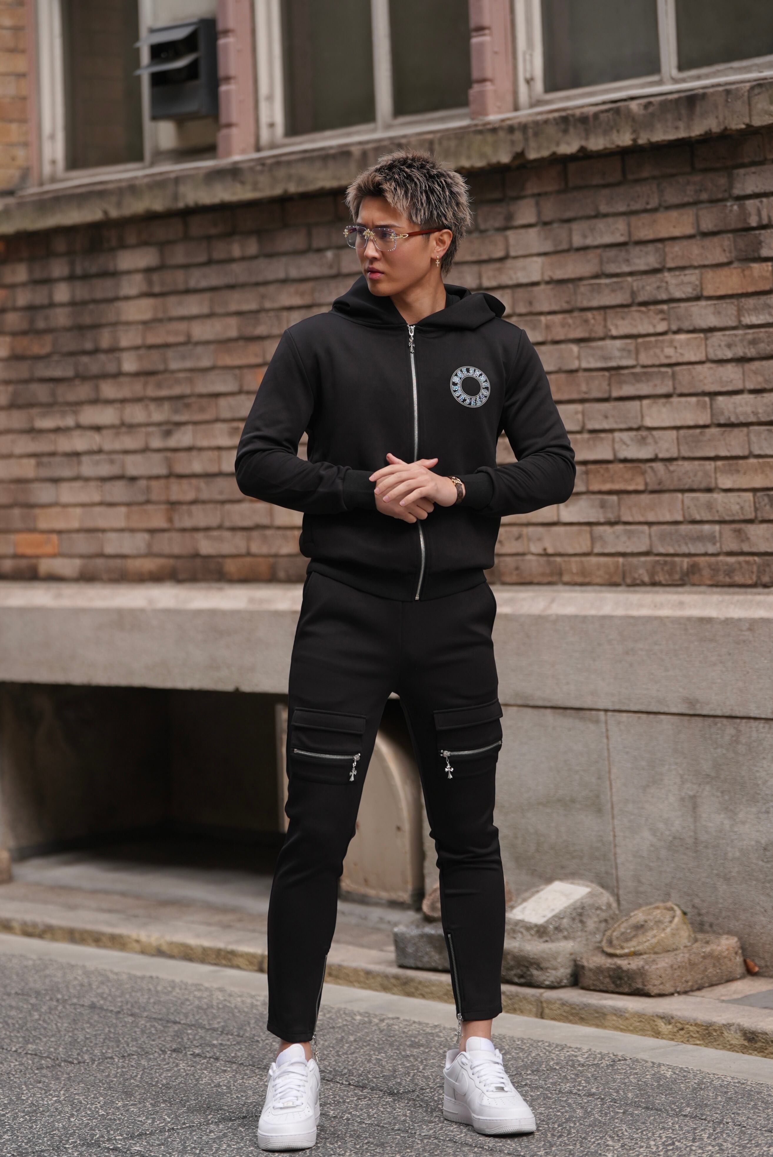 BELINDA CROSS CHARM FLAP SKINNY PANTS BLACK×SILVER【BB25036】