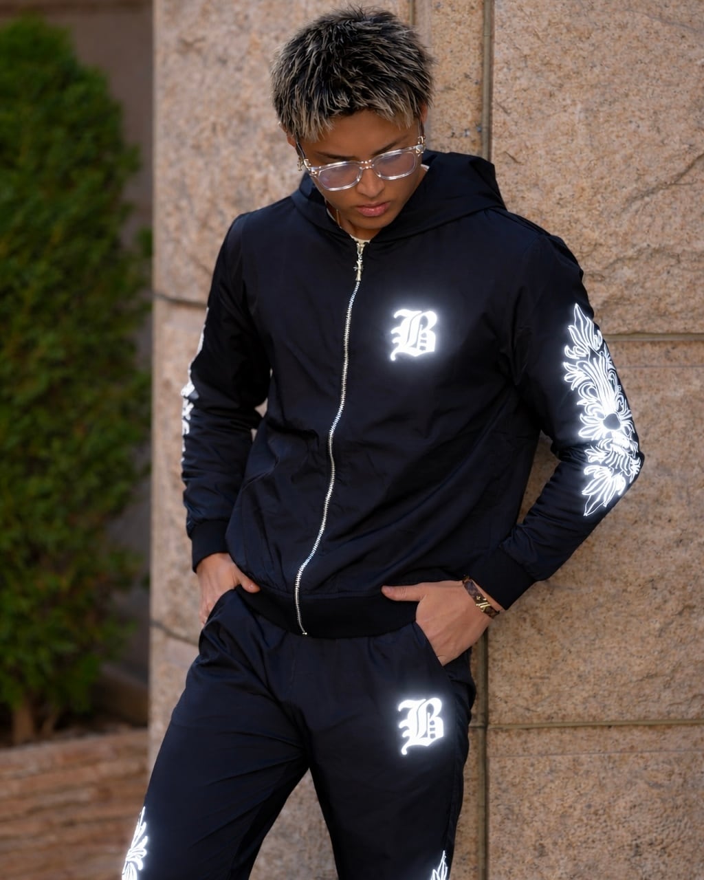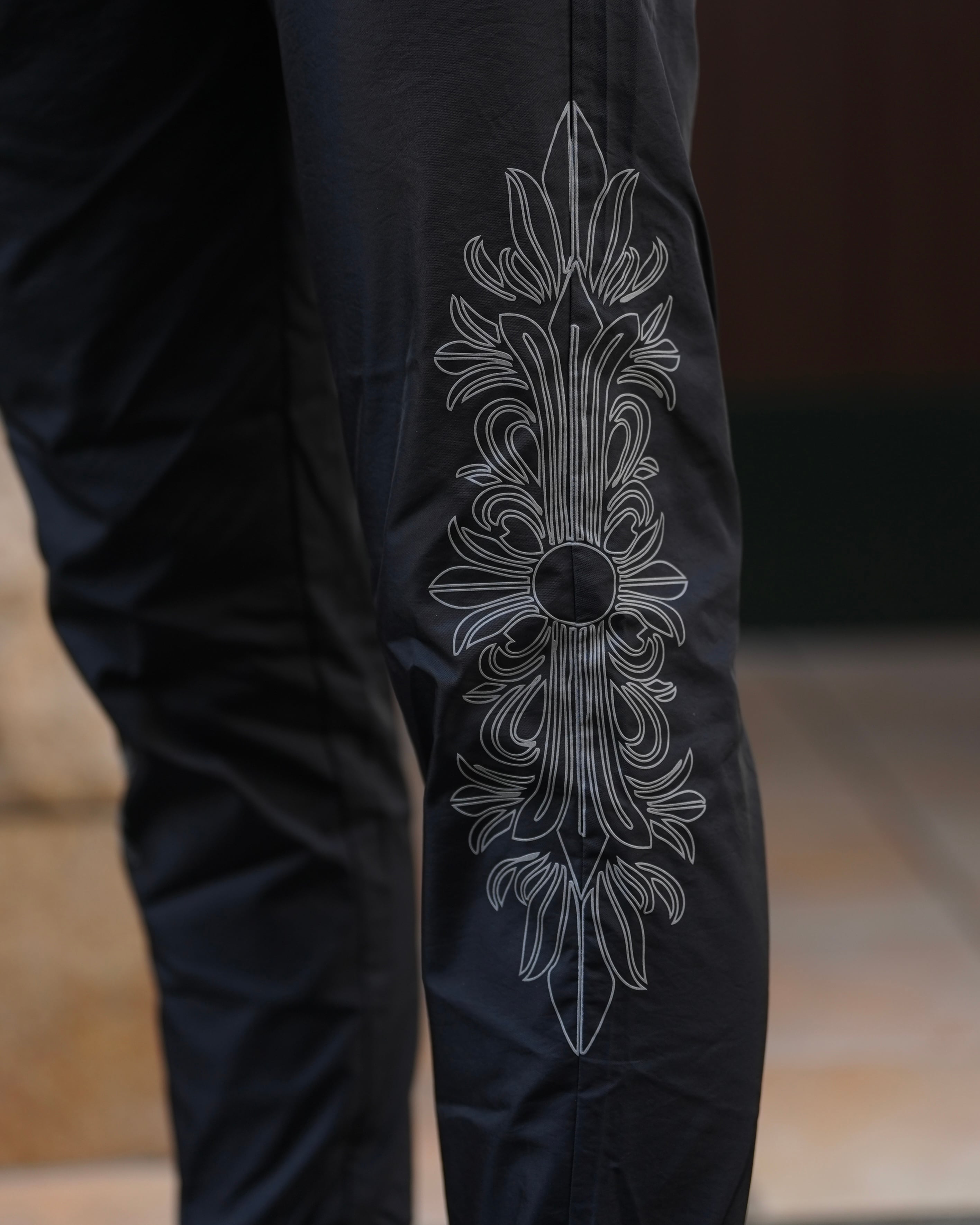 上質なボディにリフレクターのロゴが輝くナイロンパンツ。