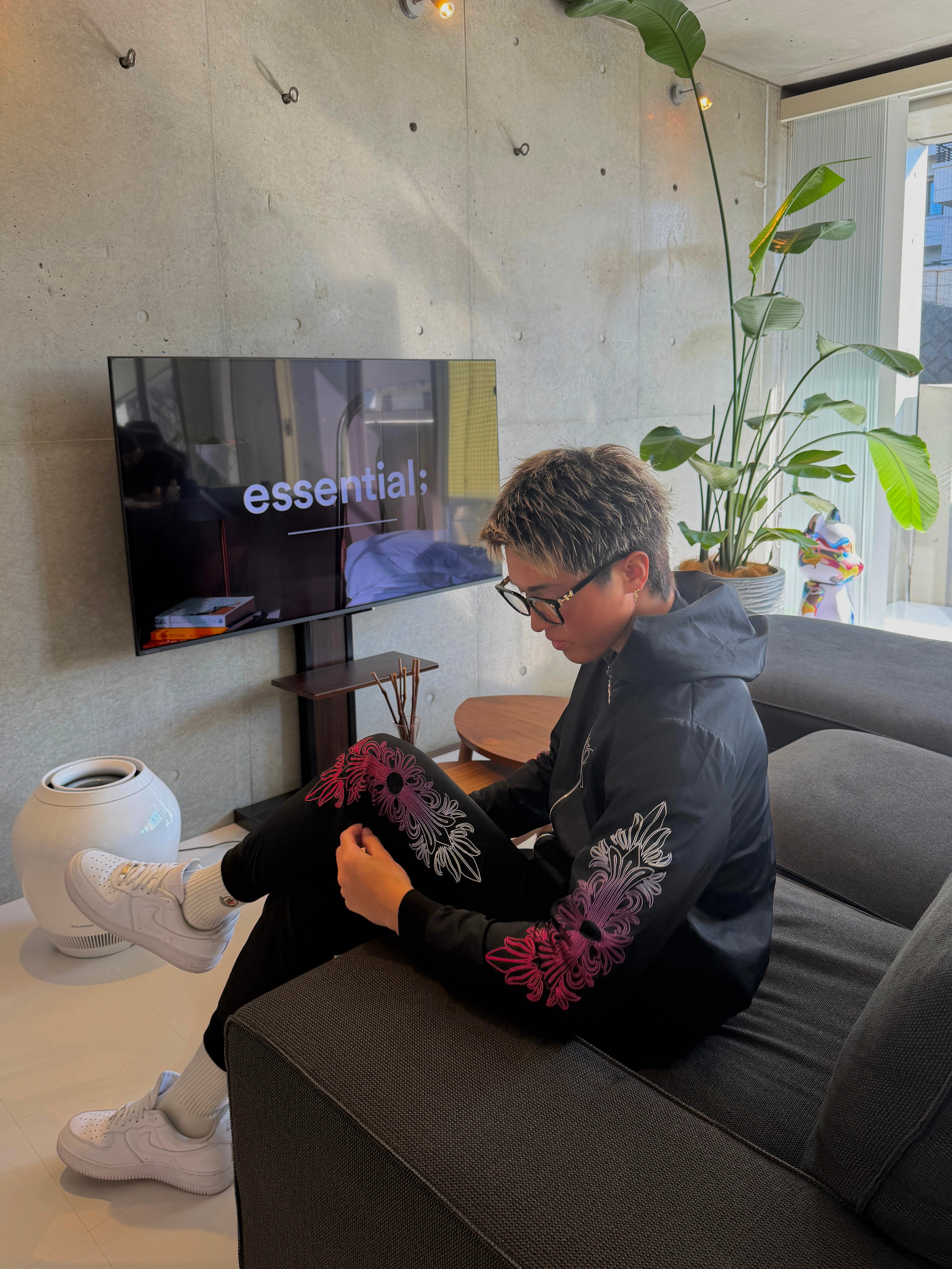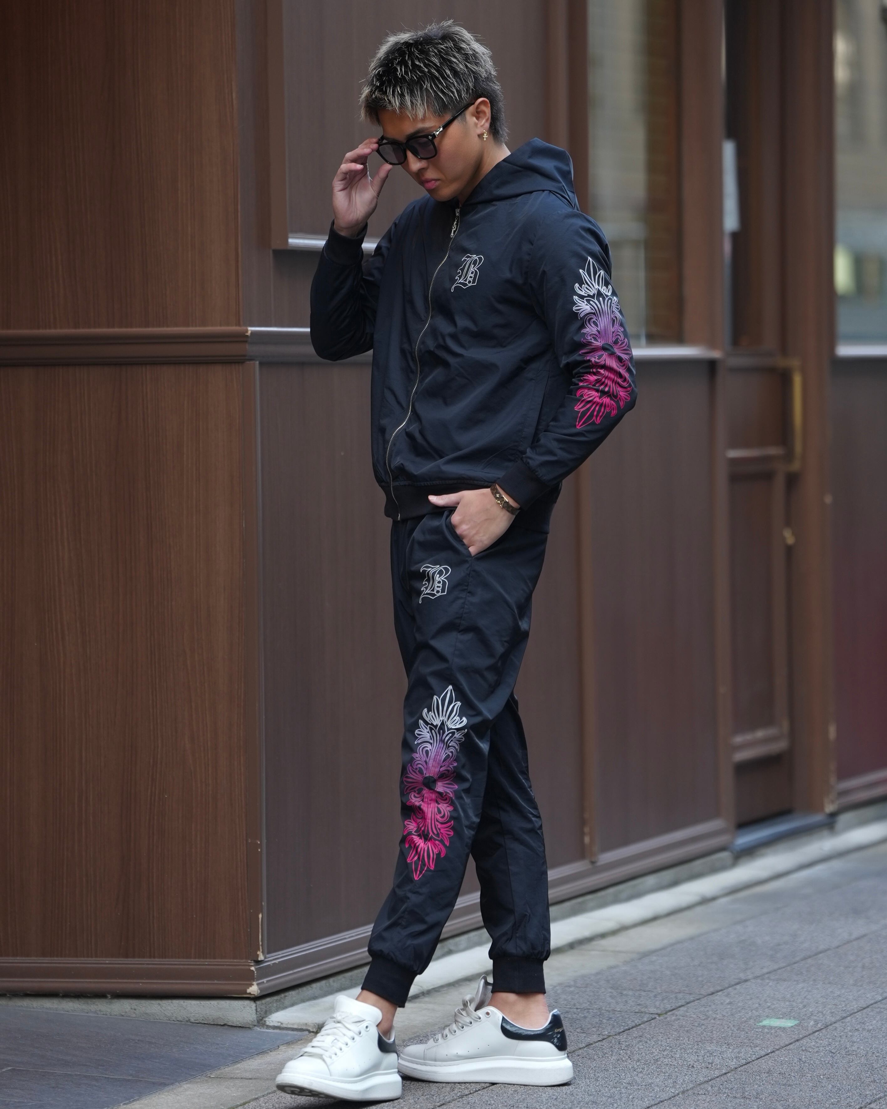 上質なボディにグラデーションのロゴが輝くナイロンパンツ。