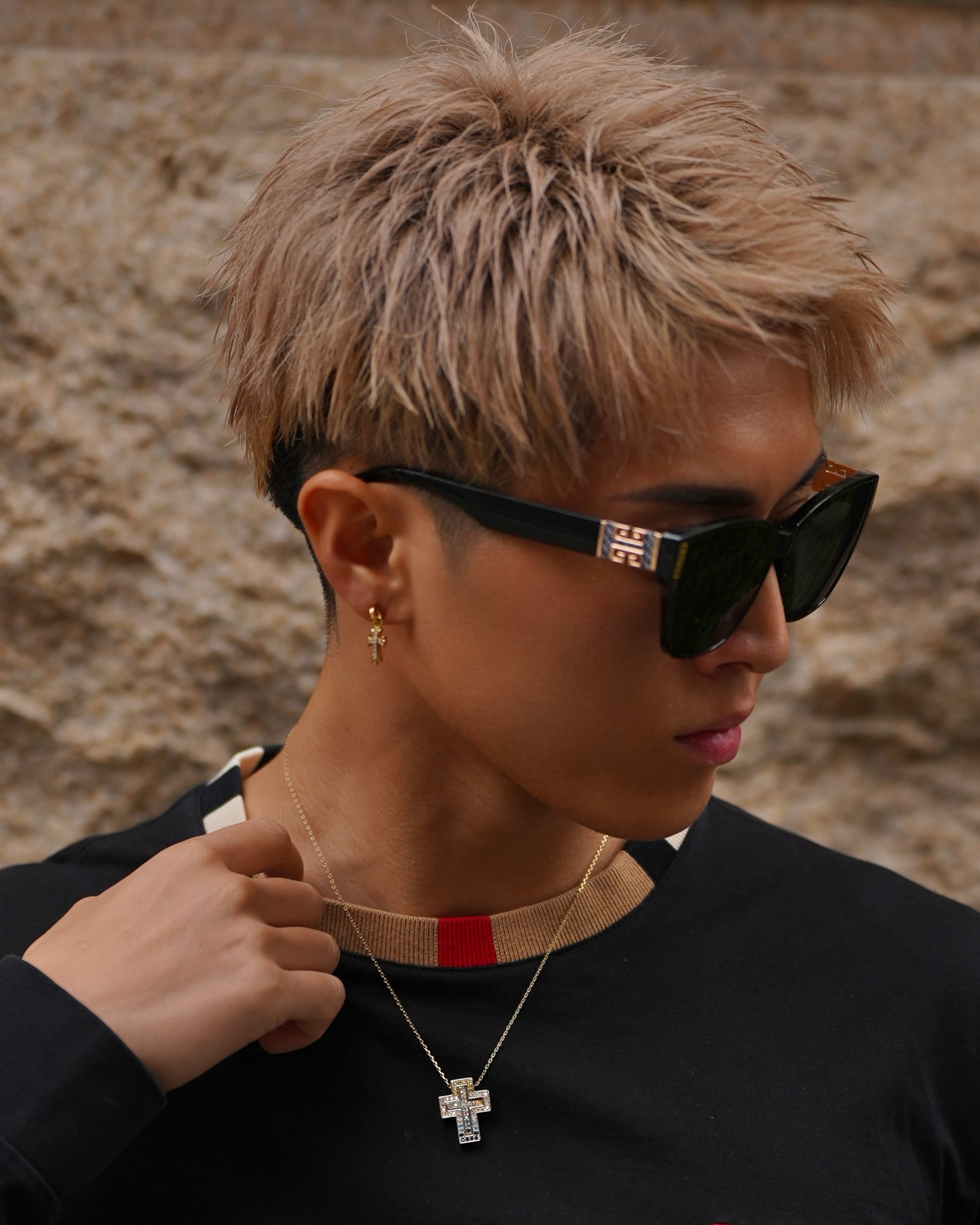 テンプル部分に施されたゴールドのグリークキーはハイブランドにも用いられる伝統的なデザインで「成功」「開運」を意味する特別なモチーフ。