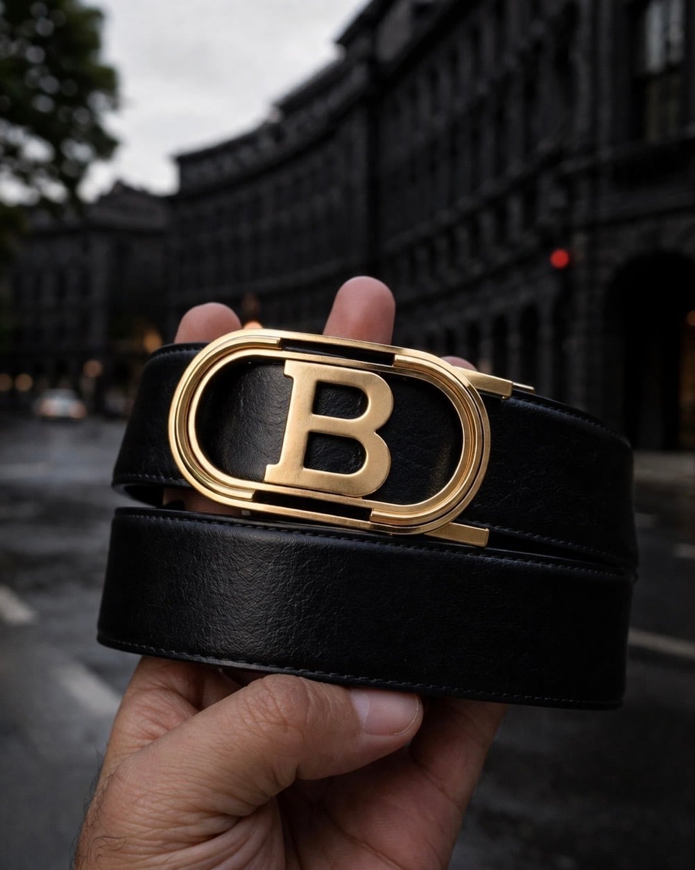 ブランドを象徴するBバックルが圧倒的な存在感を放つ一本。