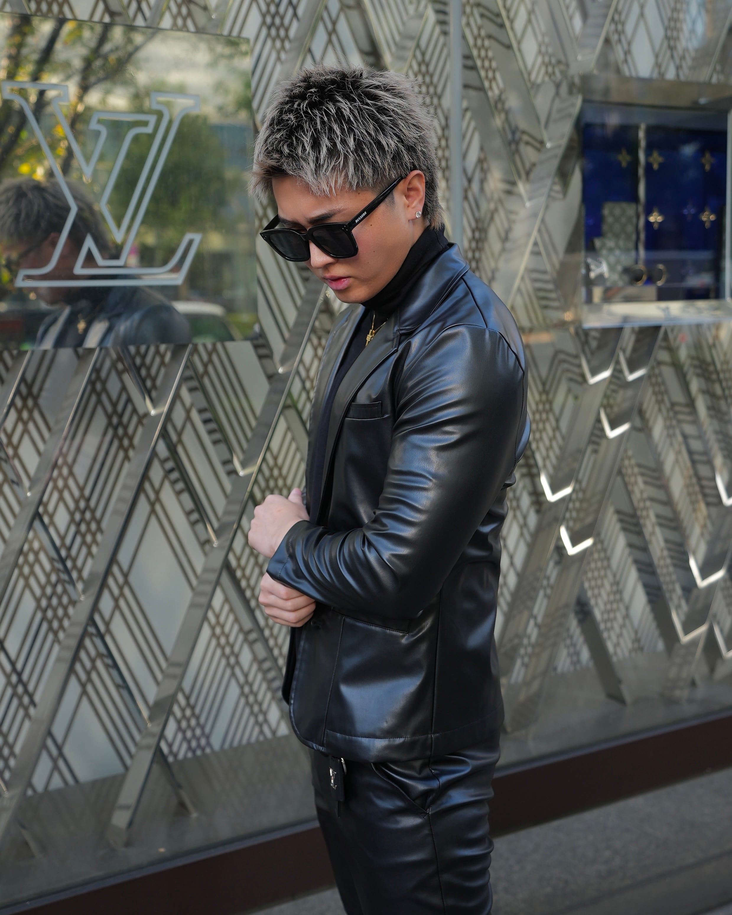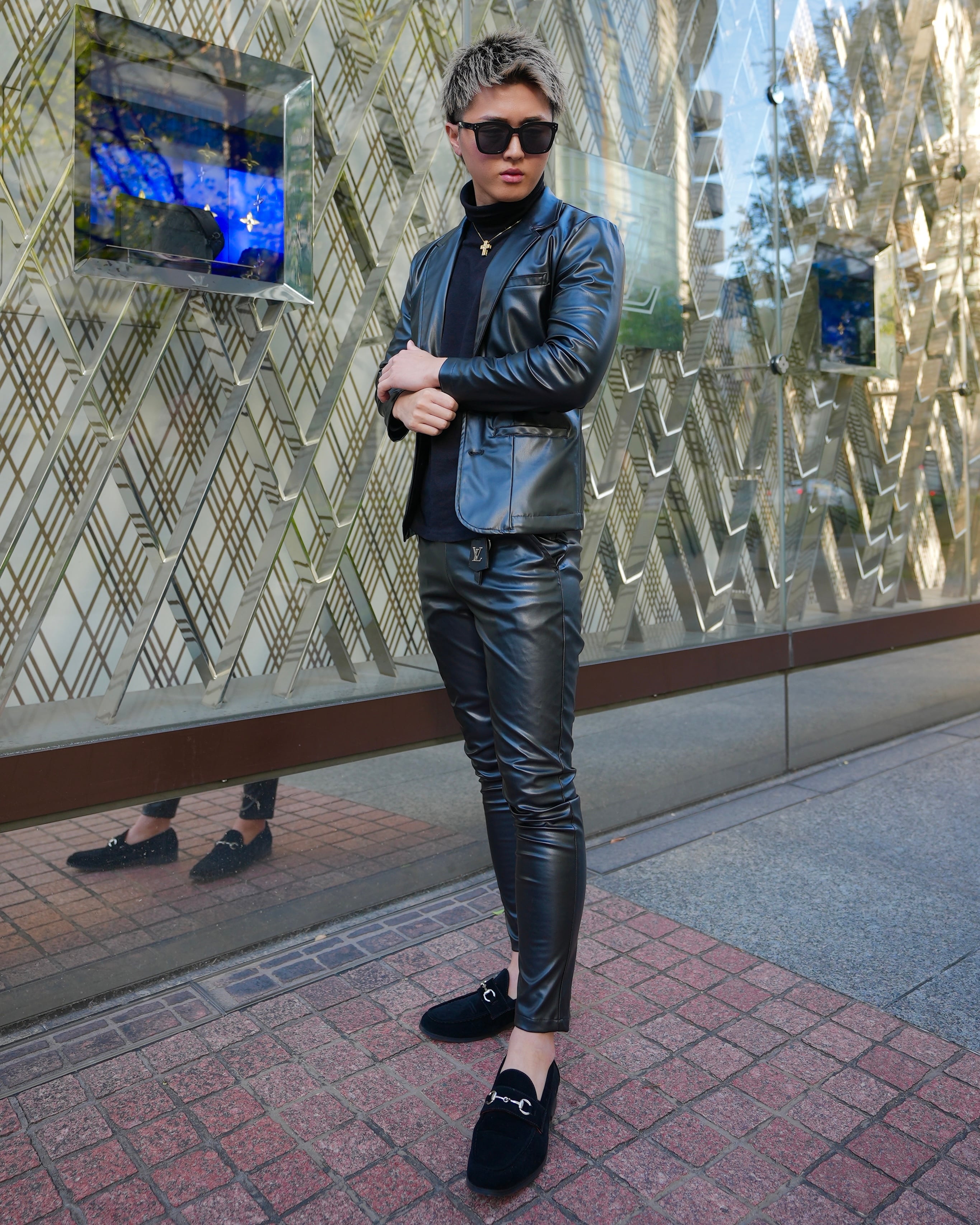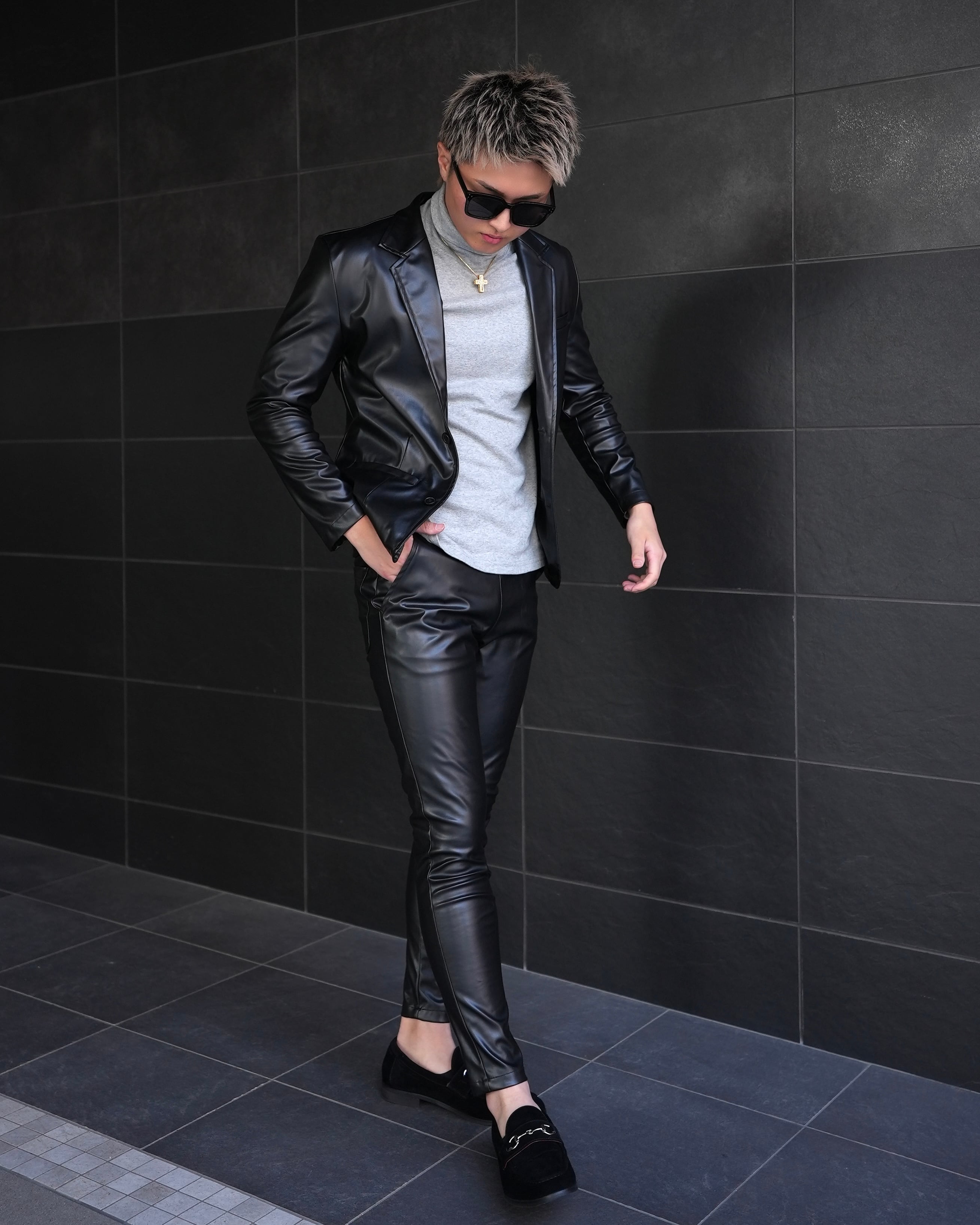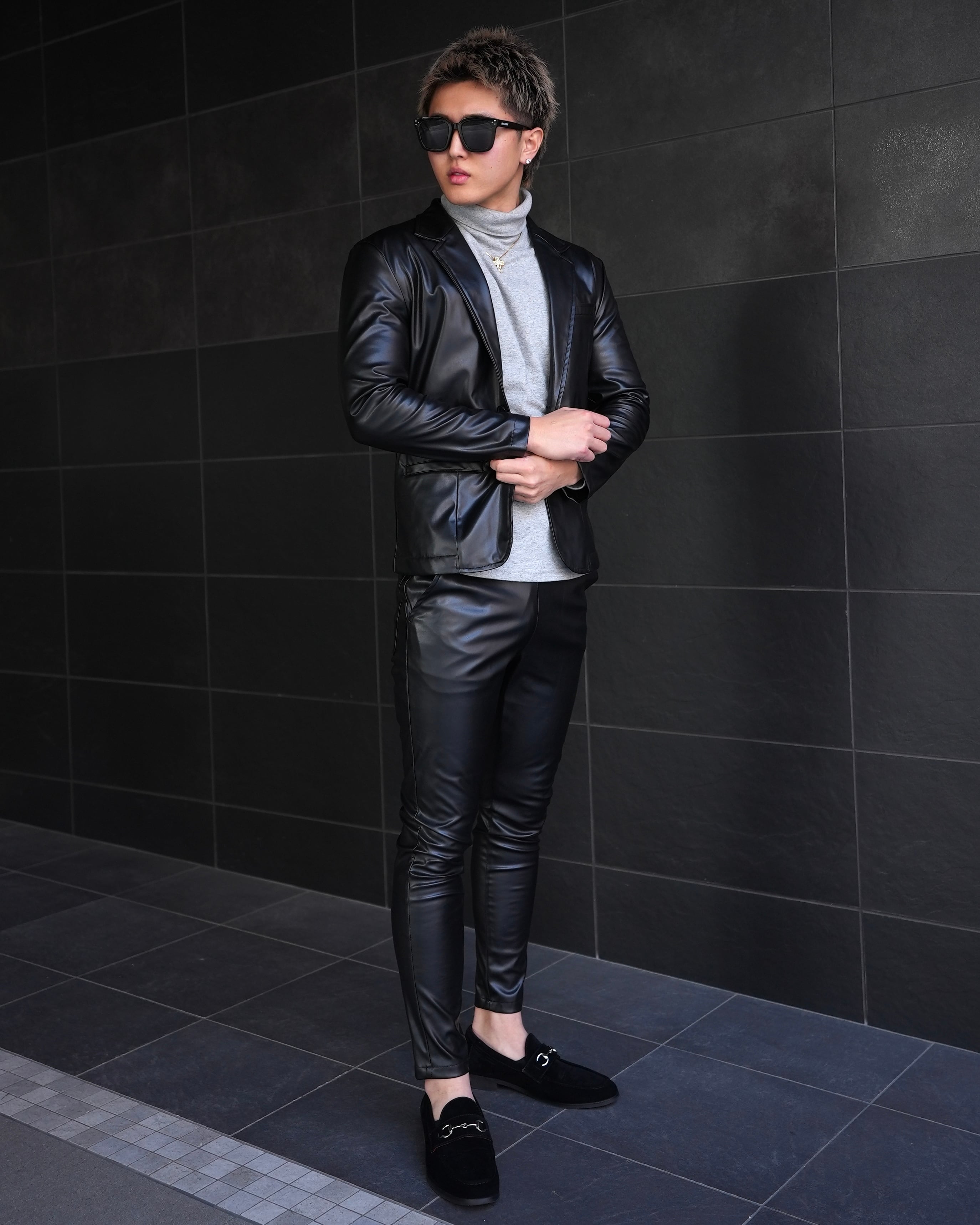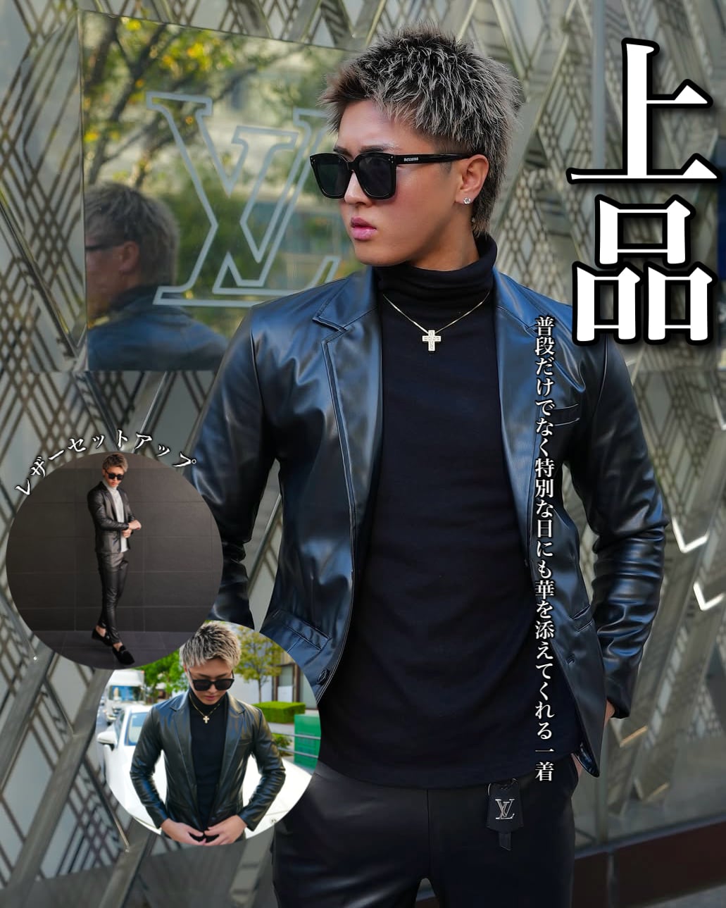 洗練されたデザインのレザーセットアップは今シーズンの必須アイテムです。