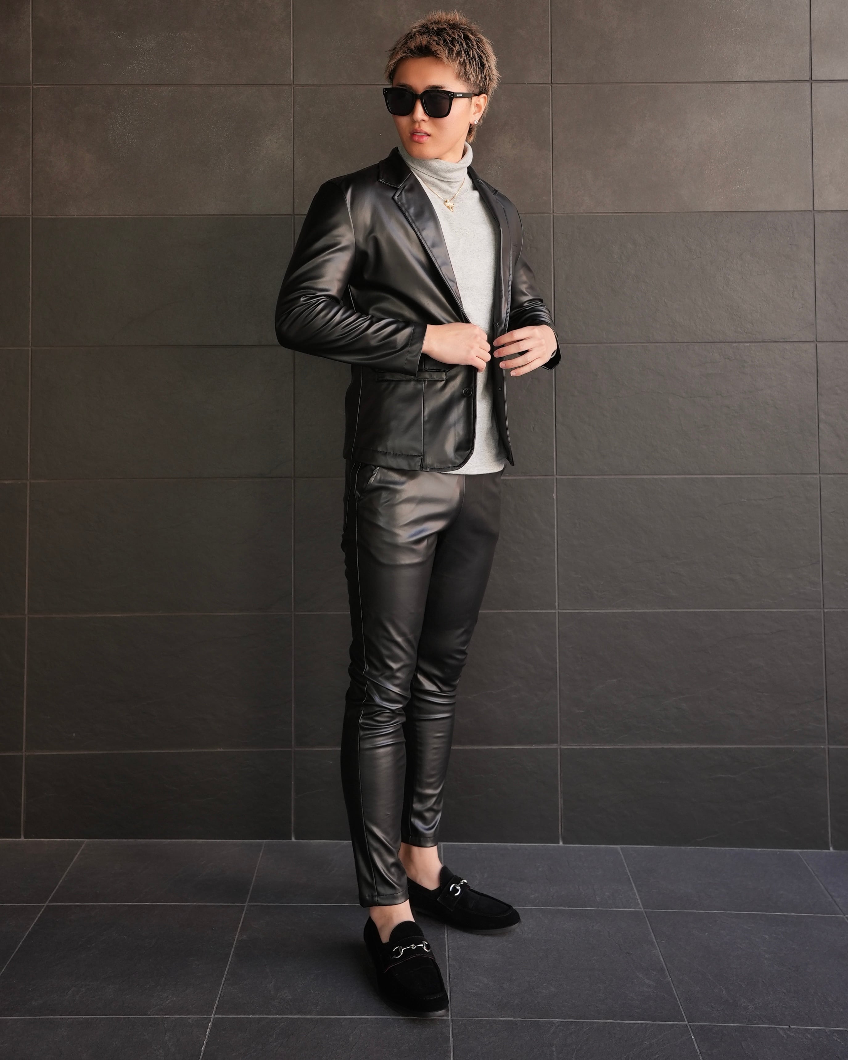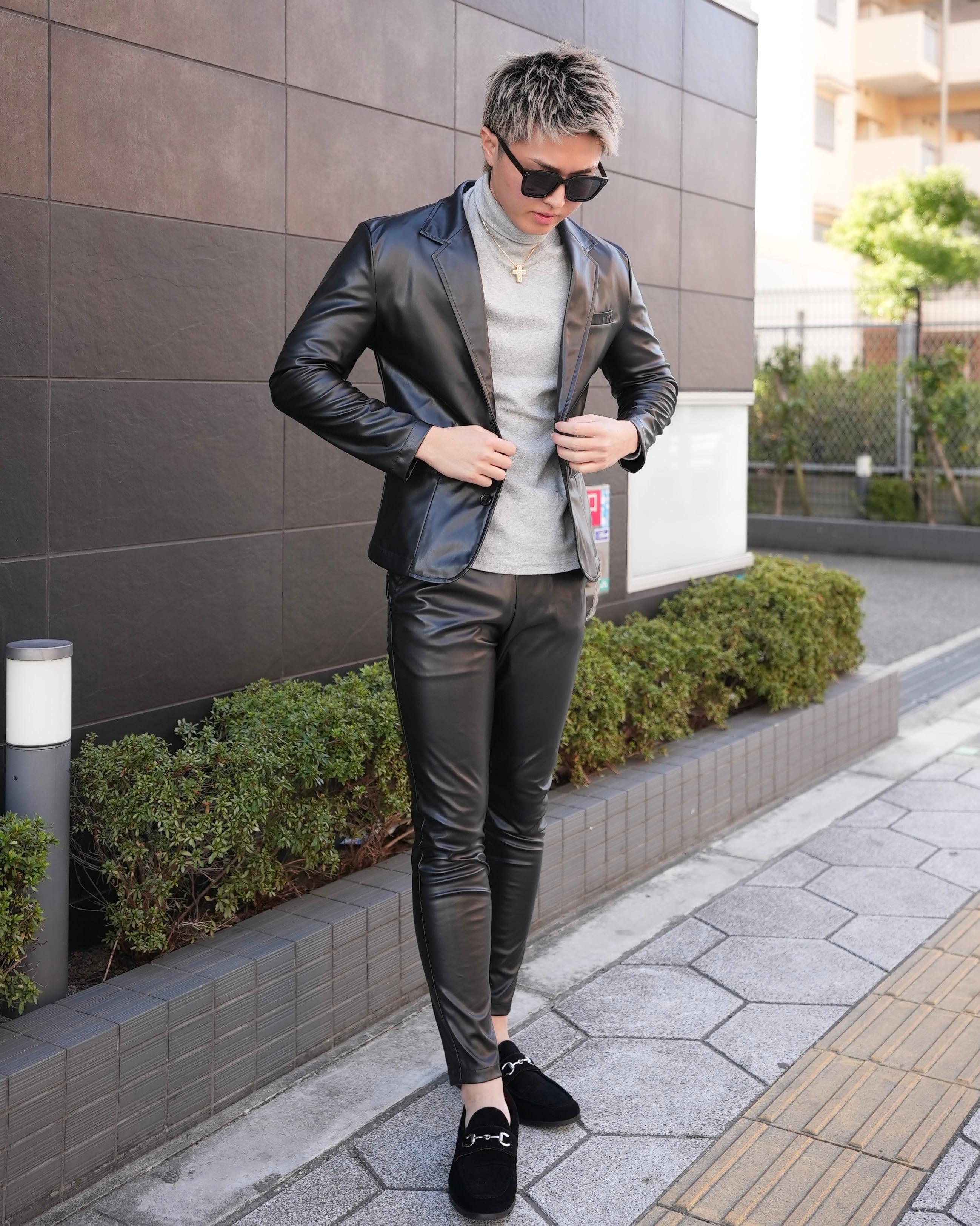 ●レザー特有の高級感を持ちつつ、着心地にも配慮したラグジュアリーセットアップ。