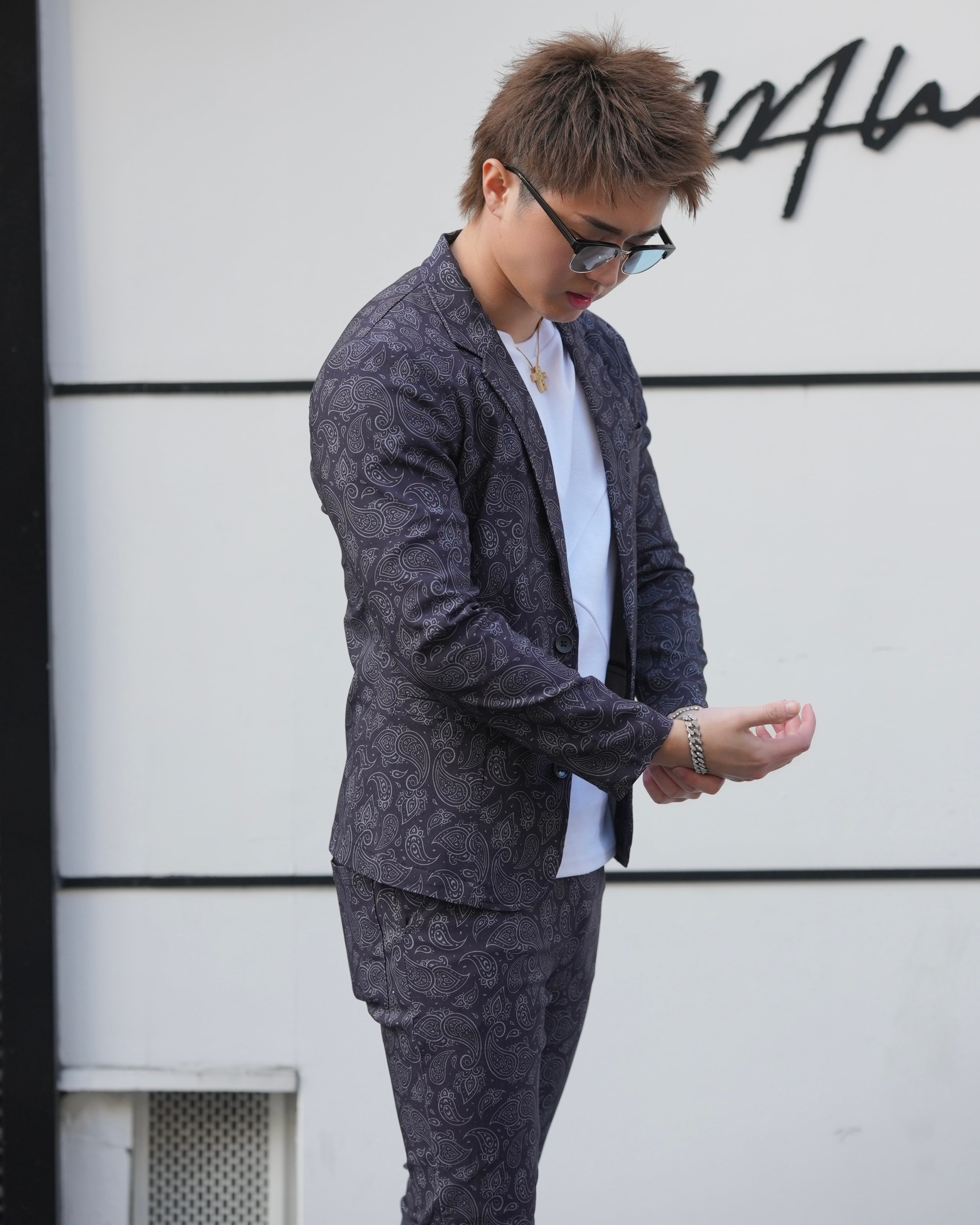 総柄ペイズリー柄を使用したセットアップです。